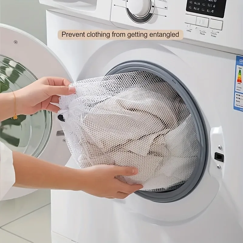 - Secure drawstring closure keeps clothes safely inside, preventing escaping items during washing, while allowing quick access when needed.