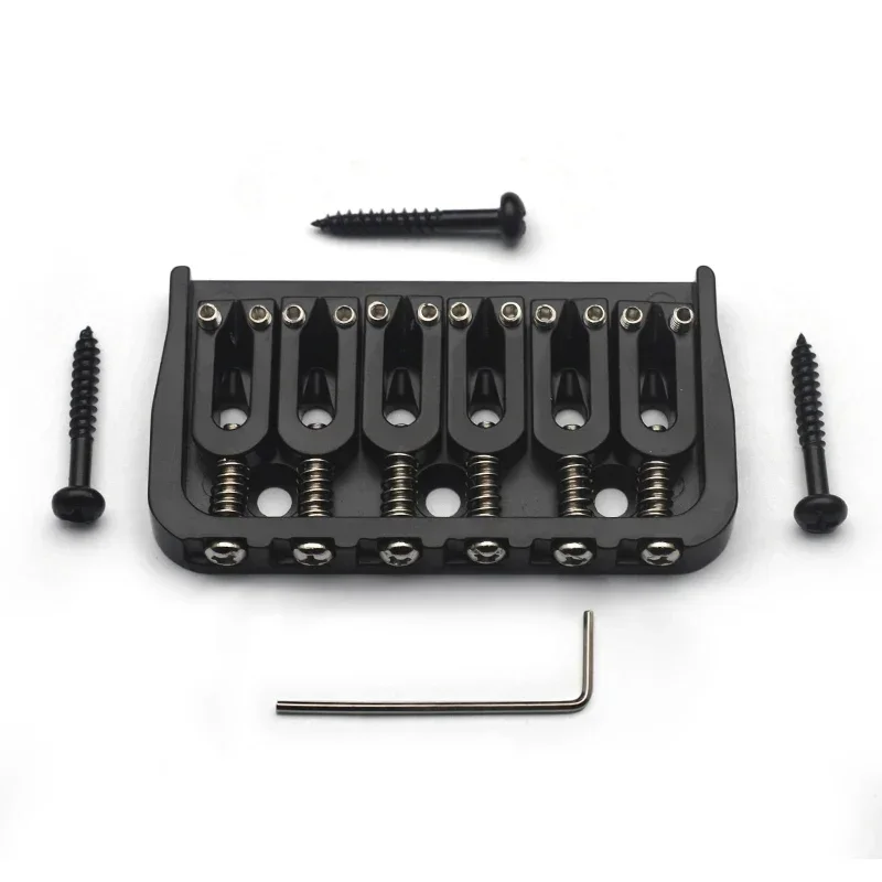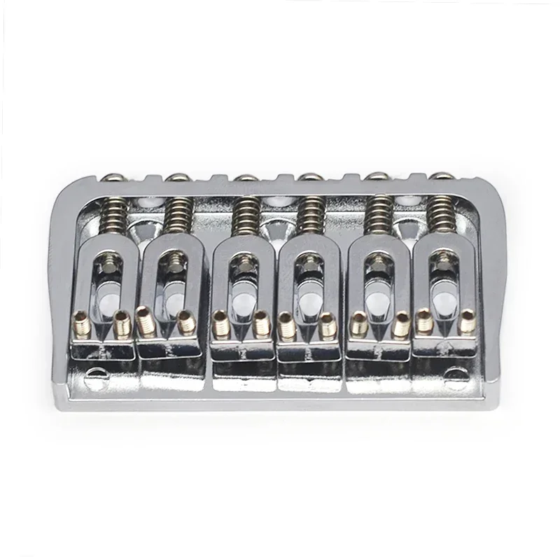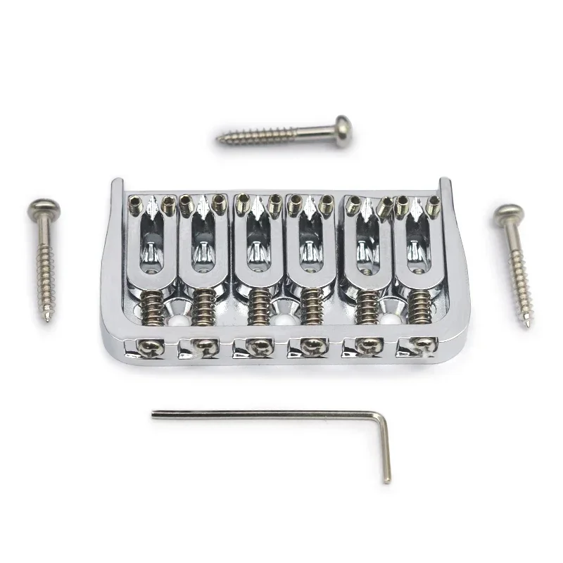 Enhance your electric guitar’s sound with this durable 6-string fixed bridge measuring 72.8 x 38 mm, featuring a 10.6 mm string spacing, solid metal base plate with side walls, and crisp relief-edged metal saddles for improved tonal clarity and sustain. Its string-through-body design ensures firm down pressure, delivering enhanced resonance and stability. Available in sleek black or chrome finishes, it comes complete with one bridge, three mounting screws, and a wrench for easy installation. Crafted from high-quality metal, this robust hardware upgrade provides a professional look while boosting your guitar’s performance and tonal richness.