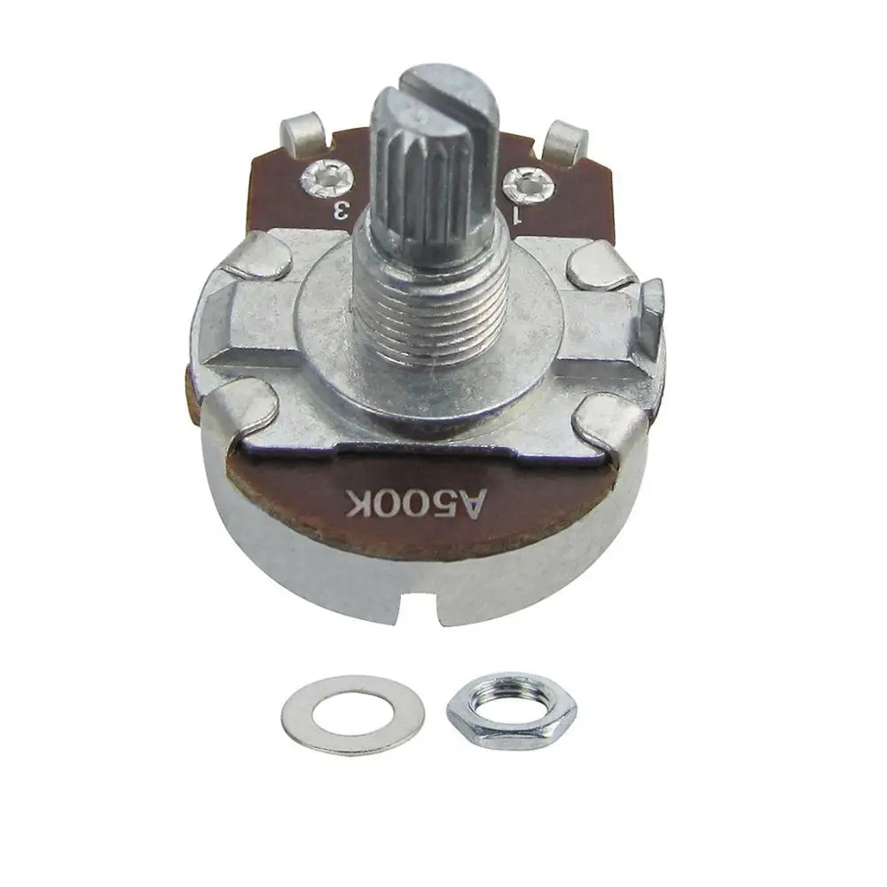Enhance your guitar’s control with this set of 20 high-quality short shaft potentiometers available in A250K, B250K, A500K, and B500K versions. Each unit features a durable metal body, a 15mm long, 6mm diameter split shaft with a knurled surface for easy grip, and a bayonet tip for secure knob attachment. The 8mm shaft thread ensures precise fitting, while the 24mm circular base and overall length of approximately 24.5mm provide rugged durability and reliable performance. Perfect for upgrading or replacing tone and volume controls, these potentiometers deliver accurate, smooth adjustment, making them an essential component for guitar enthusiasts seeking both functionality and aesthetic appeal.