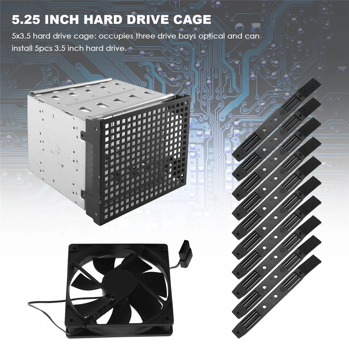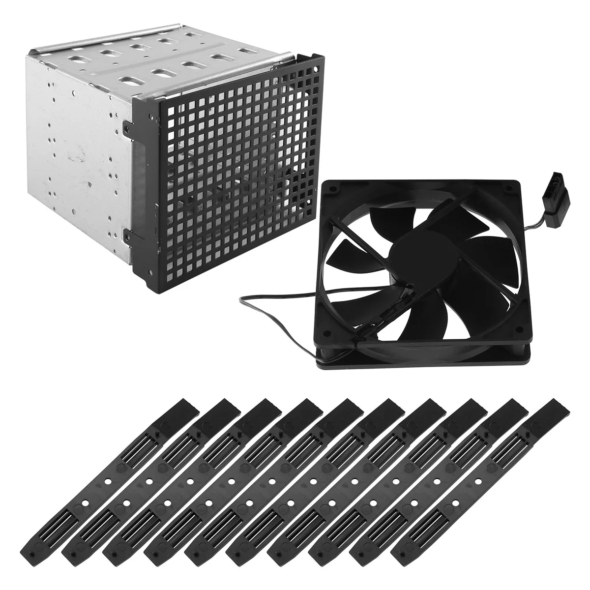 Upgrade your storage solution with this durable, silver-finished metal hard drive cage measuring 16.6 x 14.6 x 12.8 cm and weighing 600g. It supports up to five 3.5-inch hard drives across three drive bays and features a dedicated 12 cm fan slot for optimal heat dissipation. Designed for easy DIY assembly, it is compatible with standard flat CD-ROM slot-in cases and brackets, making it ideal for expanding storage capacity in main boxes. With a sturdy, industrial aesthetic and functional ventilation holes, this hard drive cage offers a reliable, high-tech solution for enthusiasts seeking a customizable and efficient storage upgrade.