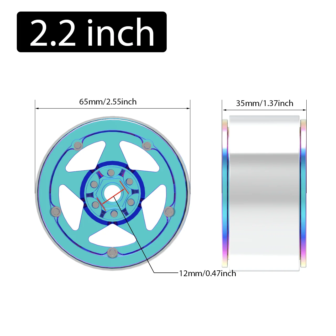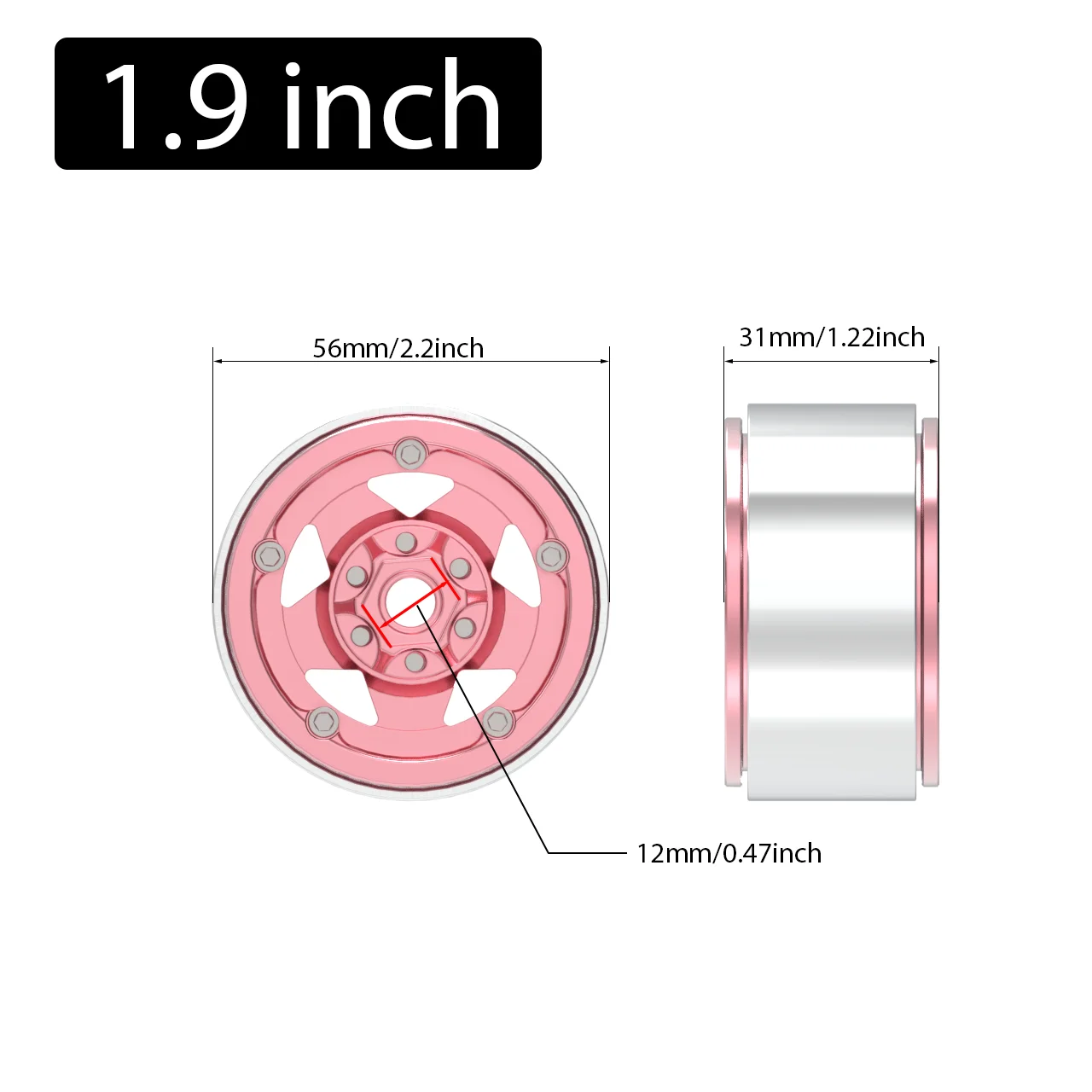 - These aluminum alloy beadlock rims come in 1.9″ and 2.2″ sizes, available in multiple colors including silver, black, brown, pink, and colorful for customization.