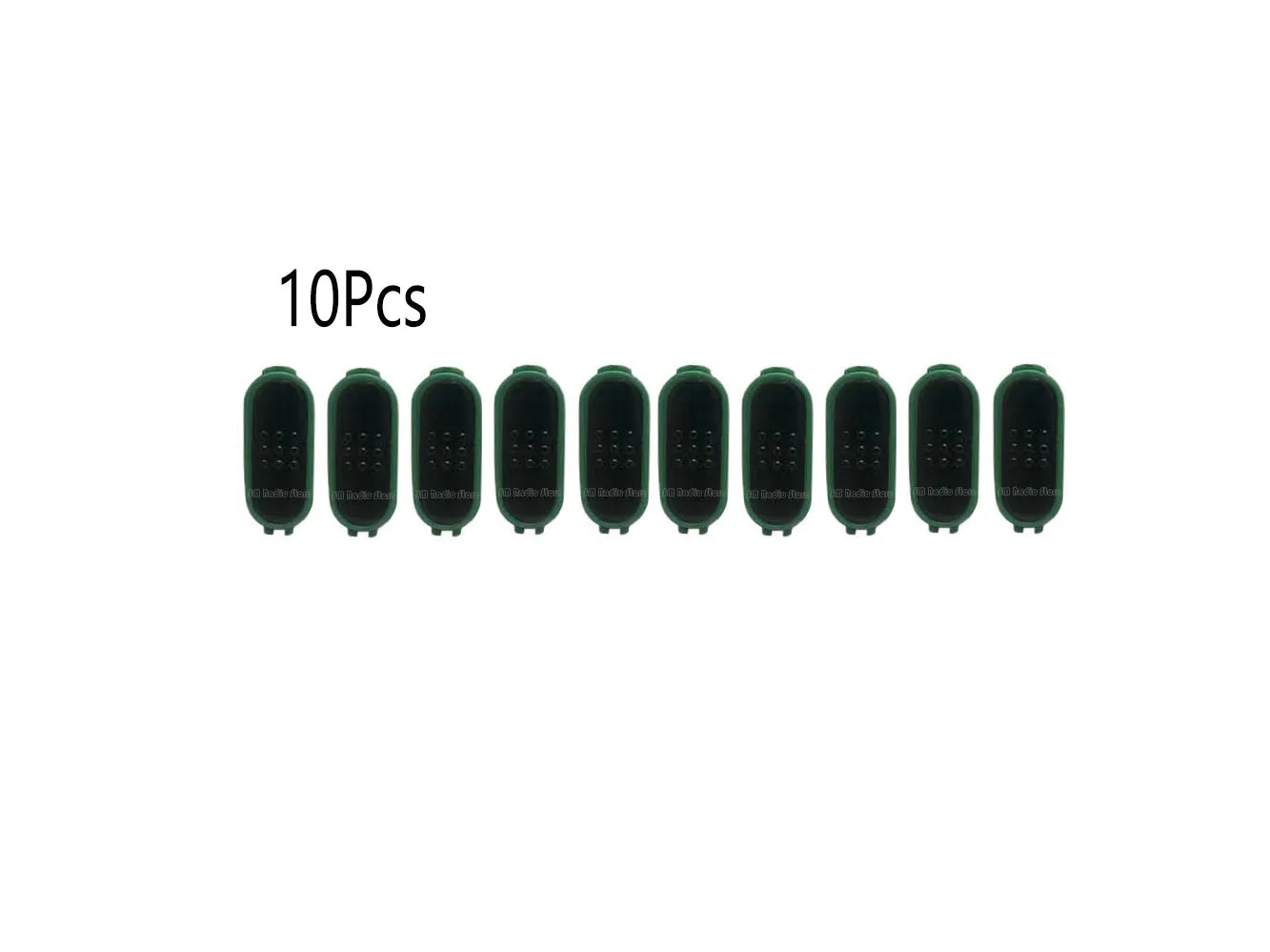 Upgrade your walkie-talkie experience with this set of ten durable rubber PTT launch buttons. Designed for seamless compatibility with models like EP350, CP165, CP185, CP476, CP477, CP1300, CP1308, CP1208, CP1608, and CB PRO PLUS, these buttons ensure reliable communication. They feature an oval shape with a smooth, rounded surface for easy operation. One side is matte black, offering a subtle, non-slip feel, while the glossy green side adds a vibrant touch and visual contrast. The textured area with indentations near the top provides added grip for quick, tactile activation. Constructed from high-quality rubber, these replacement buttons are built to withstand frequent use in demanding environments, ensuring durability and longevity for your communication devices.