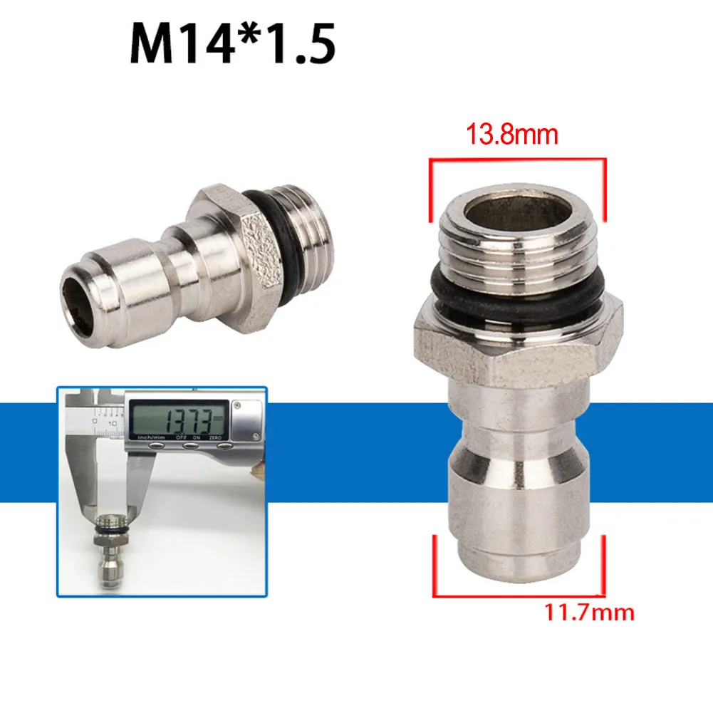 Experience effortless and reliable connections with this high-quality pressure washer quick connector, crafted from durable stainless steel or brass in sleek silver or gold finishes. Featuring a variety of thread types and sizes—including external and internal M14x1.5mm, M18x1.5mm, M22x1.5mm, G1/4 male and female, and M16x2mm female threads—this versatile fitting ranges from approximately 3.0cm to 4.3cm in length. Designed for broad compatibility, it seamlessly connects garden hoses, pumps, surface cleaners, hose reels, RVs, and boats, ensuring quick, secure attachment and detachment for all your high-pressure needs.