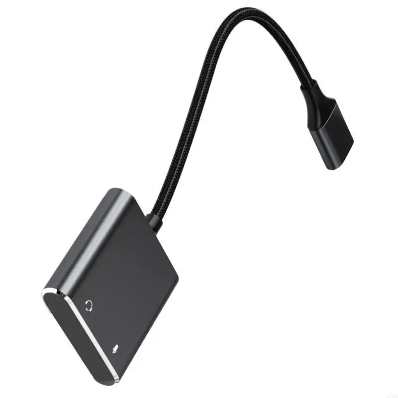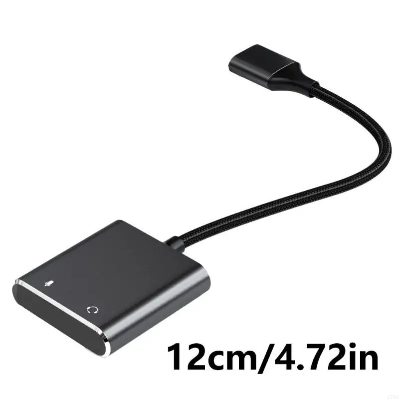 Experience improved audio quality with this sleek and compact external sound card adapter. Crafted with a lightweight, black braided cable and a durable aluminum casing, it combines modern style with exceptional durability. Its minimalist design, featuring rounded edges and subtle icons for microphone and headphone functions, ensures a streamlined look perfect for portable use. Simply connect to your laptop or desktop via the USB Type-A port—no drivers needed—enabling immediate, stable, and crystal-clear audio. This versatile device supports headphones, microphones, speakers, and more, transforming your device’s audio capabilities effortlessly. Its compact size and robust build make it a reliable solution for enhancing sound quality on the go, whether for work, gaming, or entertainment.