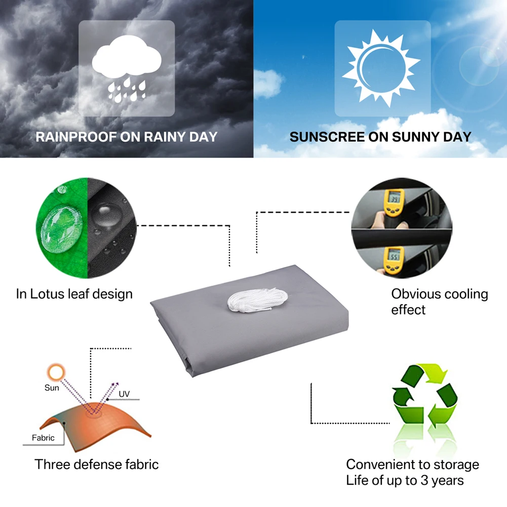 - Made from 280 GSM HDPE polyester fabric with a PU coating, providing 98% UV protection and waterproof capability for reliable outdoor use.