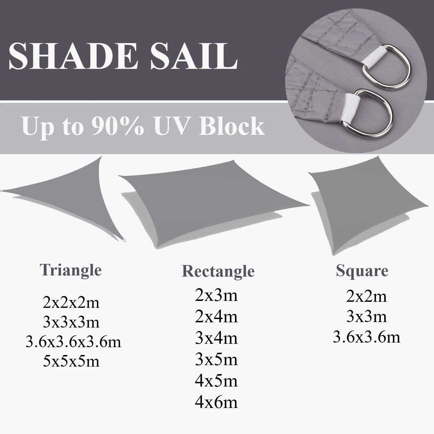 Transform your outdoor area into a shaded oasis with this stylish and durable sun shade sail. Crafted from 280 GSM HDPE polyester fabric, it offers exceptional UV resistance of up to 98% and waterproof performance, ensuring you stay comfortable even during sudden weather changes. Its sleek, minimalist design with reinforced edges and stainless steel D-rings provides stability and long-lasting durability. Suitable for gardens, patios, pools, or courtyards, this sail reduces heat, cuts cooling costs, and creates a welcoming ambiance. Its lightweight construction makes installation straightforward, and the breathable material guarantees airflow for added comfort. Enjoy a perfect outdoor shade solution that combines practicality, aesthetic appeal, and protection from the sun’s harsh rays.
