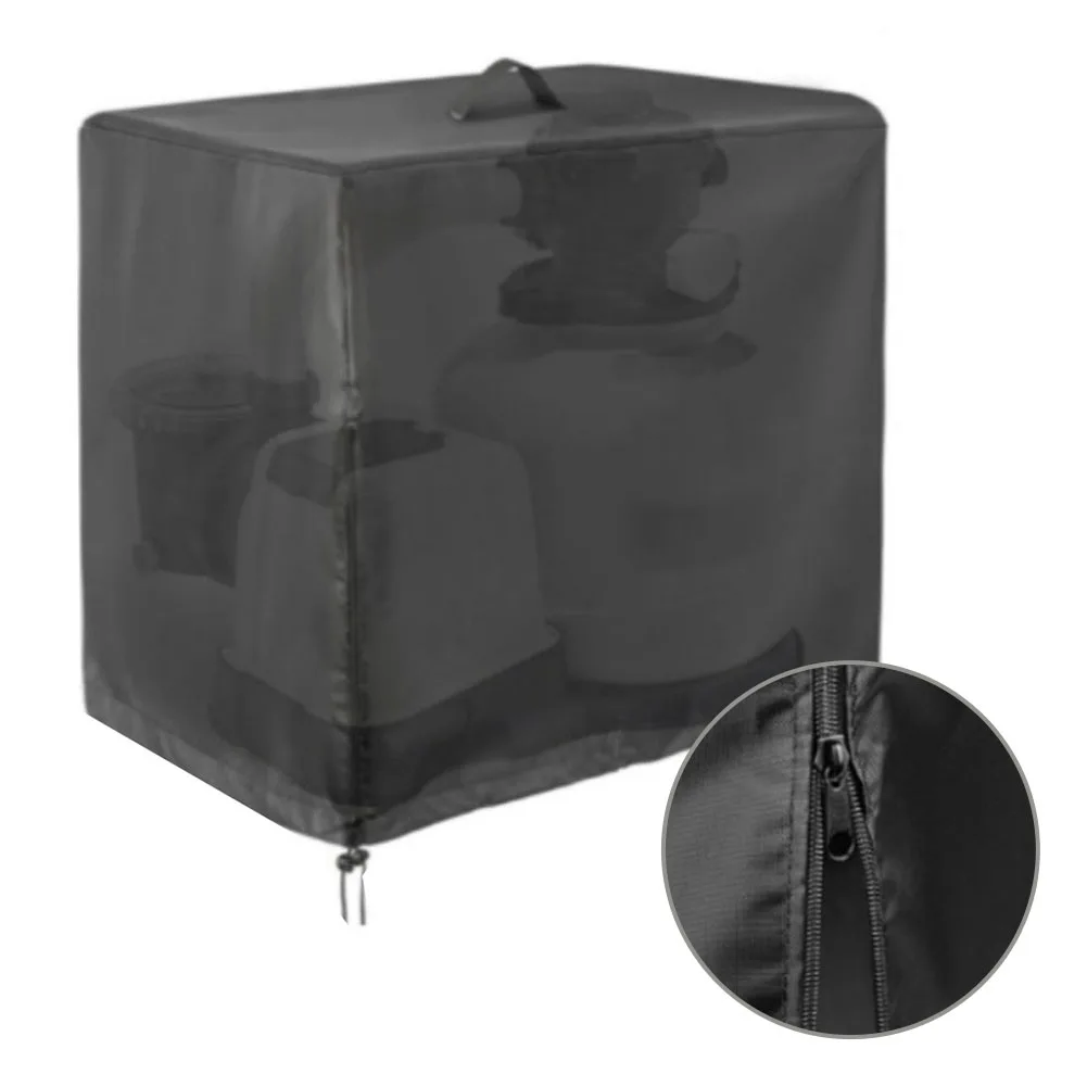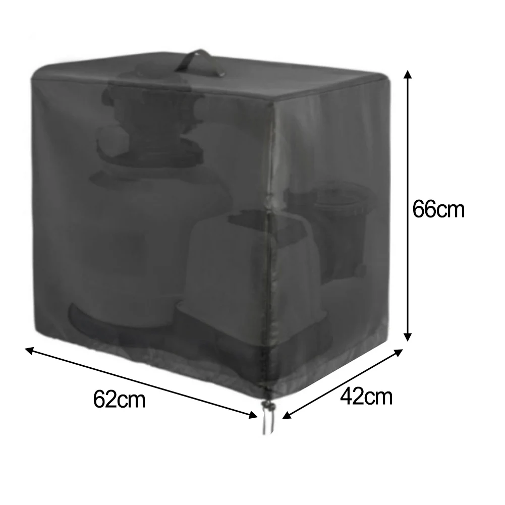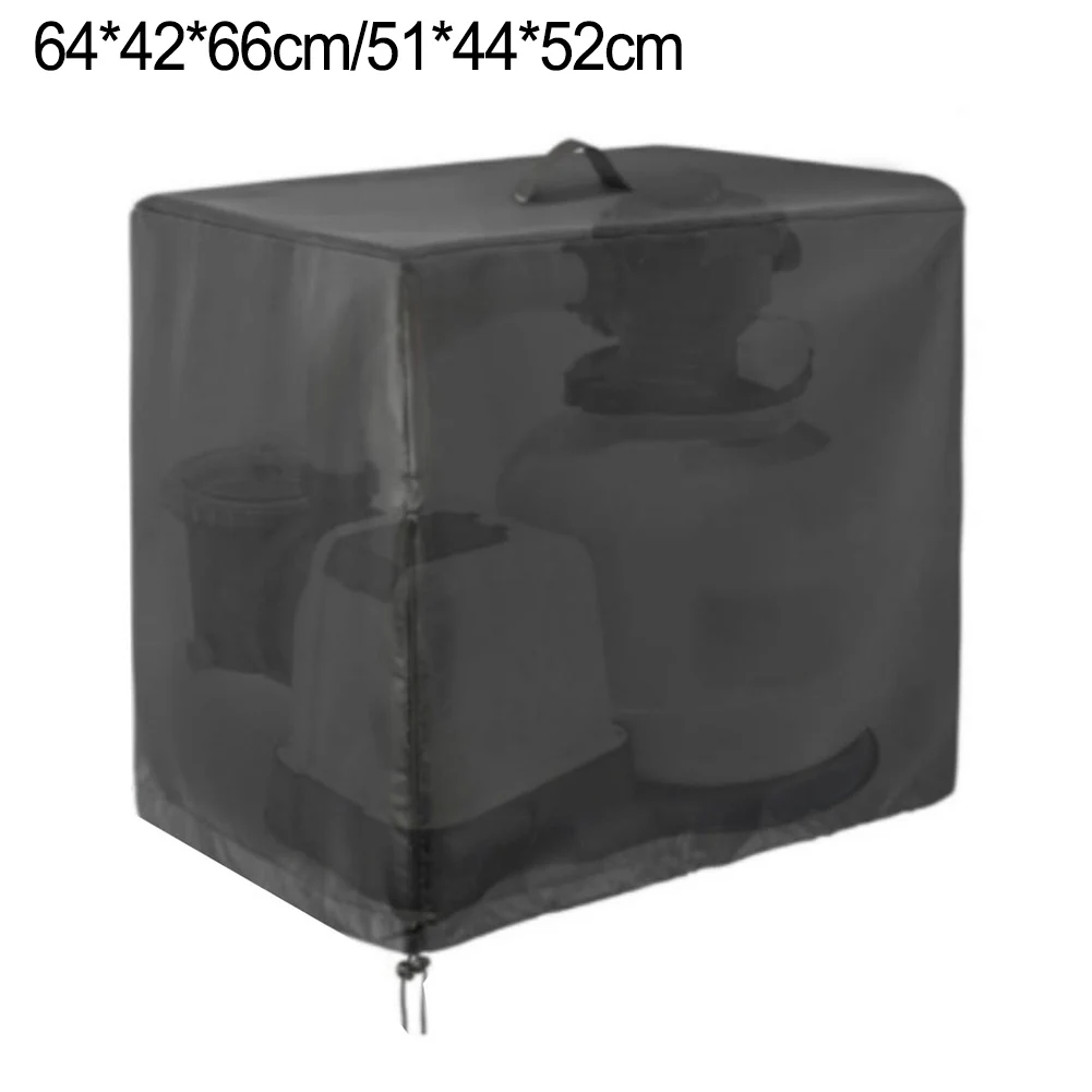 Protect your pool pump with this durable black waterproof cover, available in sizes approximately 64×42×66cm and 51×44×52cm. Crafted from 420D waterproof Oxford cloth with sealed joints, it withstands rain, sunlight, and outdoor elements to prolong your pump’s lifespan. The cover features a convenient zip opening on the back for hose access, an adjustable drawstring at the bottom to ensure a secure fit and prevent wind uplift, and is easy to rinse clean. Designed for compatibility with Intex, Krystal, and Clear pool sand filters, this functional and weather-resistant cover offers reliable protection for your valuable pool equipment.