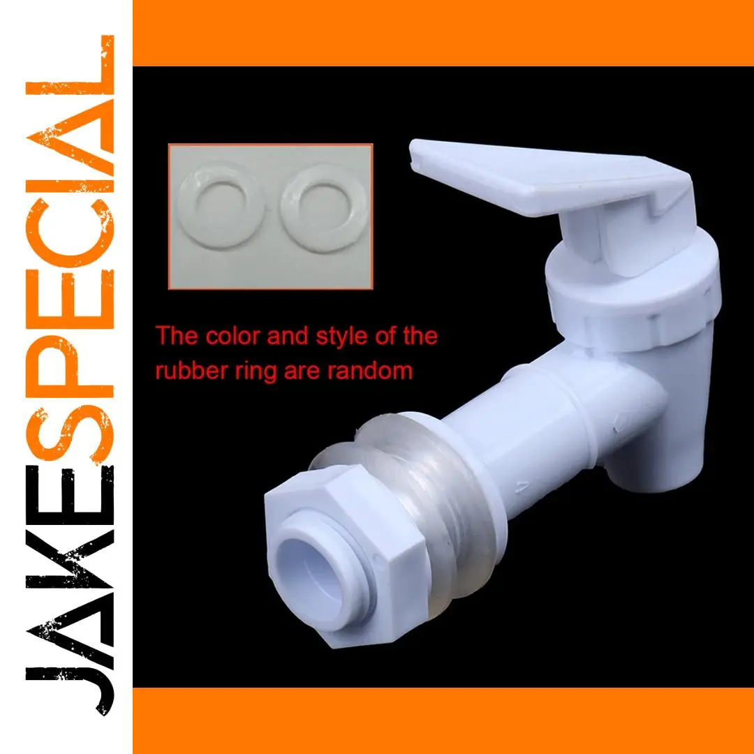 Upgrade your water dispensing setup with this durable white plastic faucet, crafted from high-quality polypropylene (PP). Designed with a threaded connection, it fits most water bottles, dispensers, coolers, buckets, watermelons, and fruit kegs, making it a versatile and practical solution. The tap features a sleek, minimalist cylindrical body with a flat, rectangular handle that extends and angles upward for easy operation. Included are 2 washers and a lock nut to ensure a secure, watertight fit. Easy to install and operate, this water dispenser tap is perfect for replacing damaged or old components and provides reliable water control for various containers.
