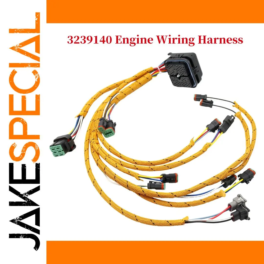 Enhance your CAT excavator with this durable engine wiring harness, model number 323-9140, compatible with 330D, 336D, and 340D models equipped with C9 engines. Featuring a bright yellow protective sleeve for high visibility and abrasion resistance, this harness includes interconnected cables of varying lengths with color-coded wires—red, white, yellow, blue, and black—for easy, correct installation. The central black rectangular connector housing with perforations provides a reliable junction, while the black, green, red, and gray plastic connectors with secure latch mechanisms ensure firm connections. Built for heavy machinery environments, this harness offers durability, practical design, and streamlined installation, supporting your equipment’s optimal performance.