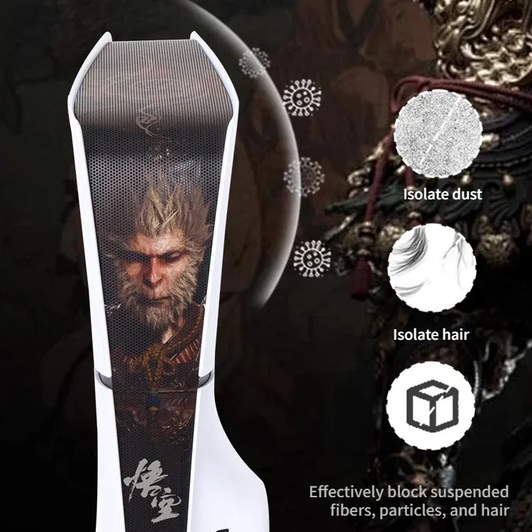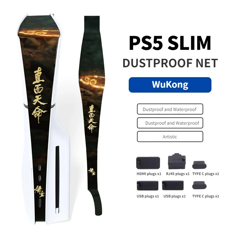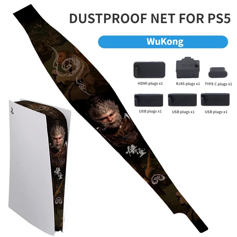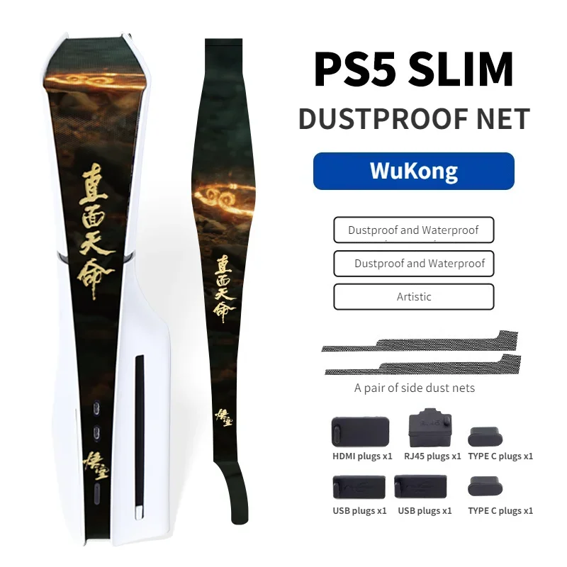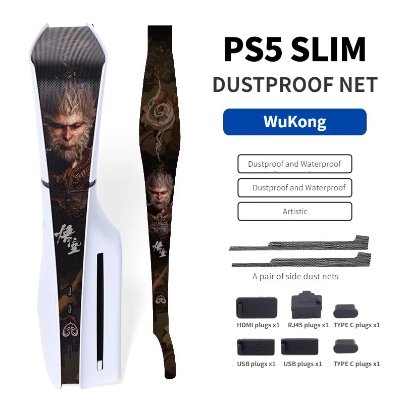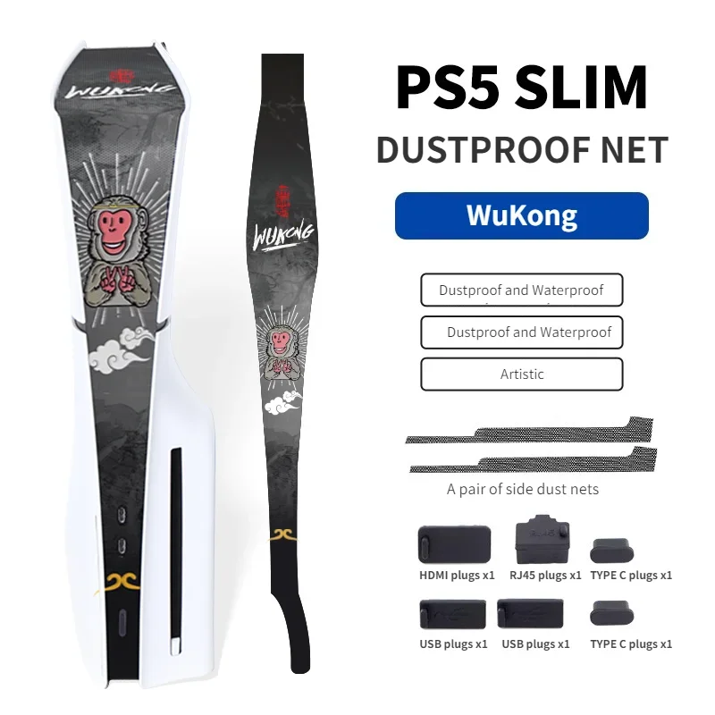 Enhance your gaming experience with the Black Myth WuKong Dust Protection Net designed specifically for your PS5 and PS5 Slim. This stylish and practical dust cover not only shields your console from dust but also elevates your gaming setup with its sleek design. Installation is a breeze—simply place it on without the hassle of disconnecting any wires. Equipped with fix plugs for added stability, this dust cover combines functionality with charm. Imagine your PS5 looking pristine and protected while you enjoy hours of gaming. Make the smart choice for your console today!