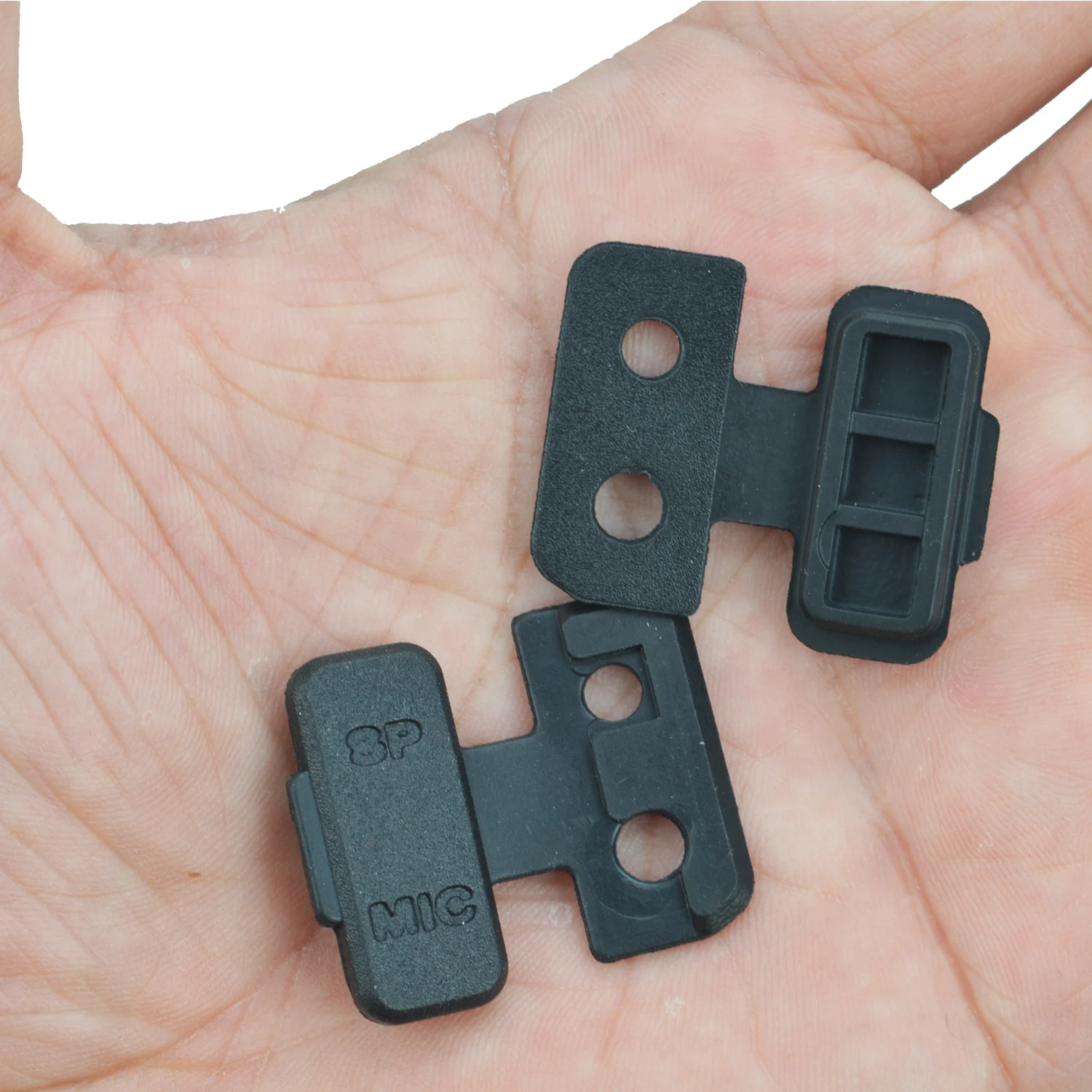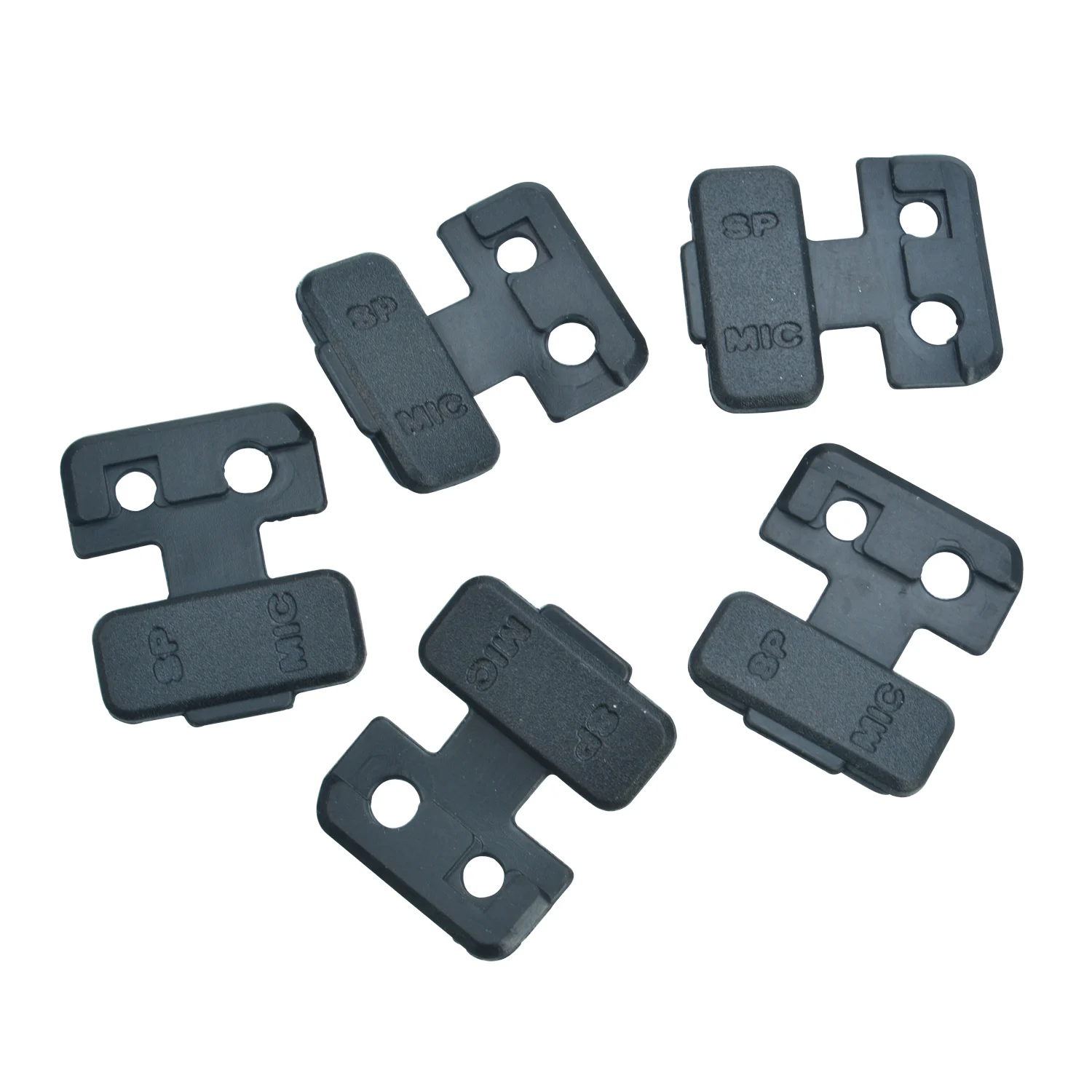 Keep your Baofeng UV-5R walkie-talkie in top condition with this set of 5 durable dustproof caps specifically designed for the earphone jack port. These black caps are essential accessories that prevent dust, dirt, and debris from entering the port, ensuring your device remains clean and fully functional. Made from sturdy plastic, each cap features a sleek matte finish, with one elongated shape embossed with “8P” and “MIG,” and the other a compact square with a raised border for easy grip. When fitted, they seamlessly blend with your device's look, offering protection without sacrificing style or accessibility. Trust these caps for reliable, long-term maintenance of your walkie-talkie.
