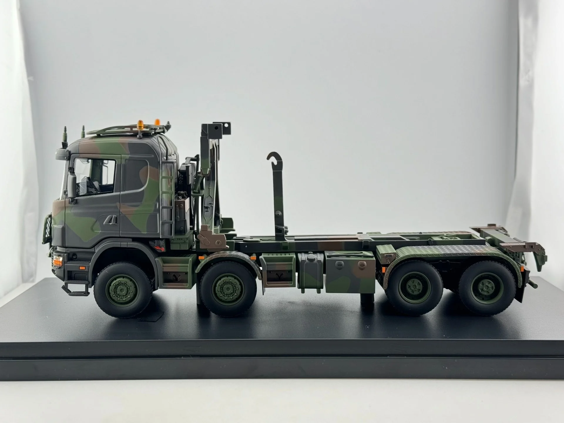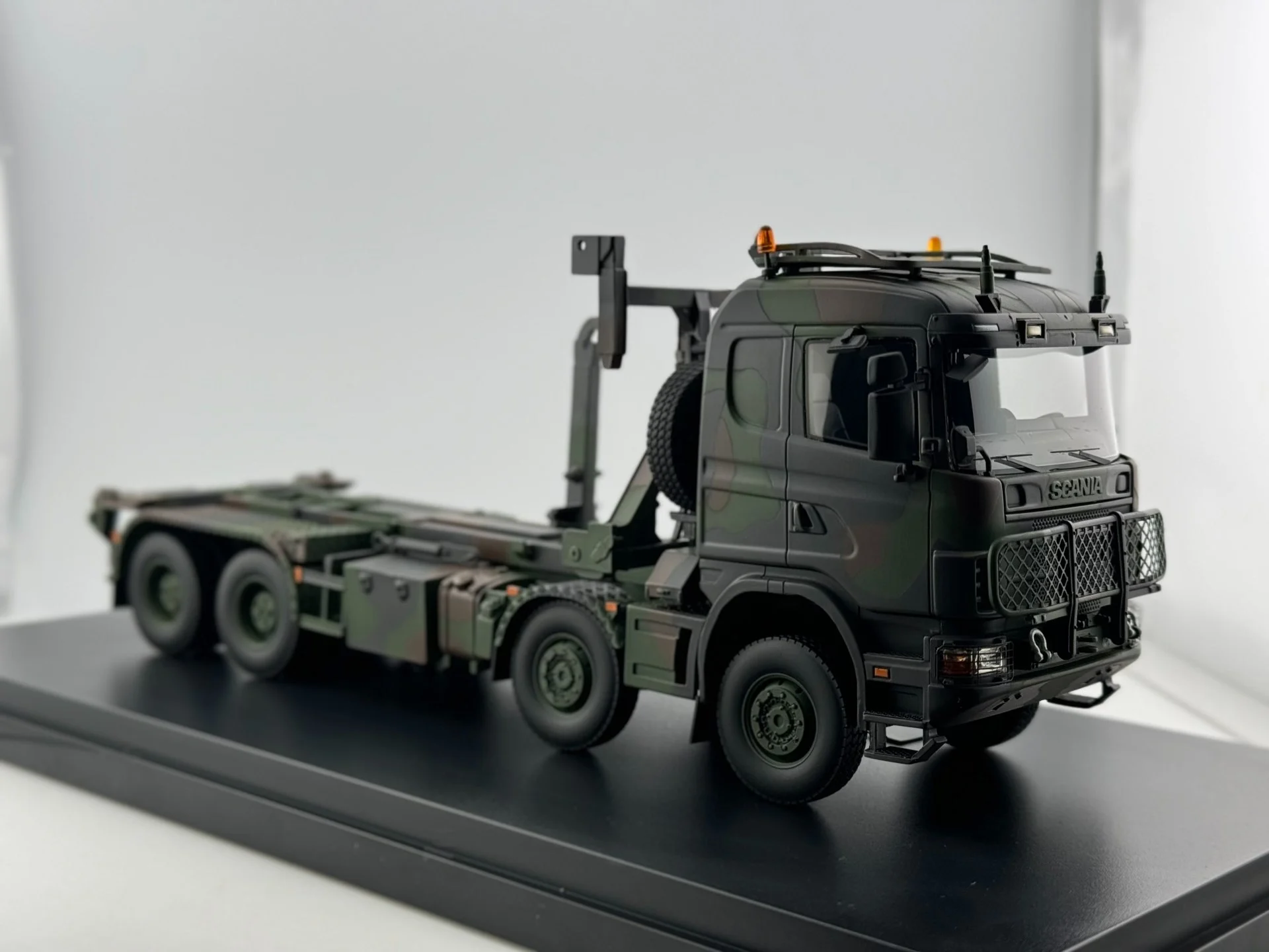 This 1:35 scale diecast resin model replicates a Dutch military SCANIA truck with realistic detailing and a length of approximately 12.86 cm. Designed for adult collectors, it features a dark green color with subtle shading variations, detailed cab with realistic windows, side mirrors, and headlights. The open flatbed at the rear displays textured surfaces and external components, highlighting its authentic military design. This static collectible is free of electronic functions, batteries, or moving parts, making it a durable display ornament for enthusiasts. Perfect for display in any collection, it captures the rugged, functional aesthetic of a military transport vehicle with precision and craftsmanship.