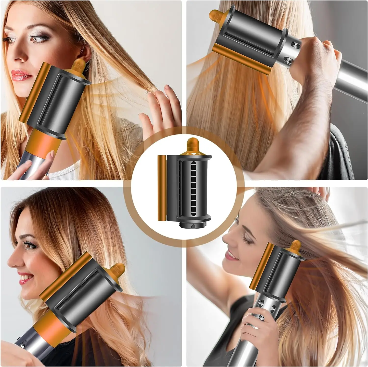 Enhance your hairstyling with this Flyaway Attachment compatible with Dyson Airwrap HS01 and HS05 models. Featuring an anti-flight nozzle design, it effectively controls flyaways for a sleek, polished look. The accessory is available in three vibrant colors—Gold, Pink, and Rose—adding a fashionable touch to your styling routine. Made from durable black plastic with a tapered rectangular shape, it fits seamlessly onto Dyson styling tools, offering both functional performance and modern aesthetics. Perfect for achieving smooth, flyaway-free hair, this accessory elevates your daily hair care experience with its sleek design and reliable performance.