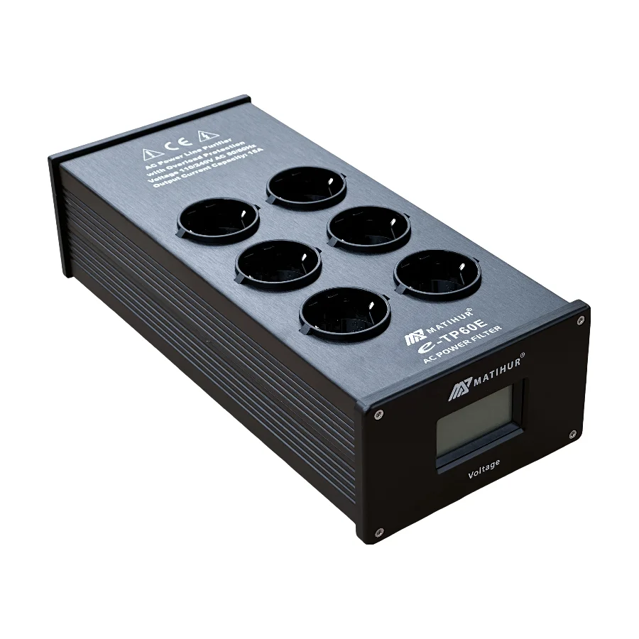 Experience unparalleled sound and image quality with the this e-TP80 audio noise AC power filter. Crafted with a sleek silver aluminum case, it combines modern aesthetics with durability. The eight EU outlets, protected by rubber covers, ensure a safe and reliable connection for all your high-fidelity audio and visual equipment. The embedded LCD voltage monitor keeps you informed of real-time power status, giving you peace of mind. Its ventilation slits help maintain optimal performance, while its robust construction supports demanding environments like hospitals, industrial facilities, or home theaters. With advanced surge protection, overload safeguards, and high-quality materials, this device guarantees both safety and top performance. Elevate your media experience today by integrating this sophisticated power conditioner into your setup.