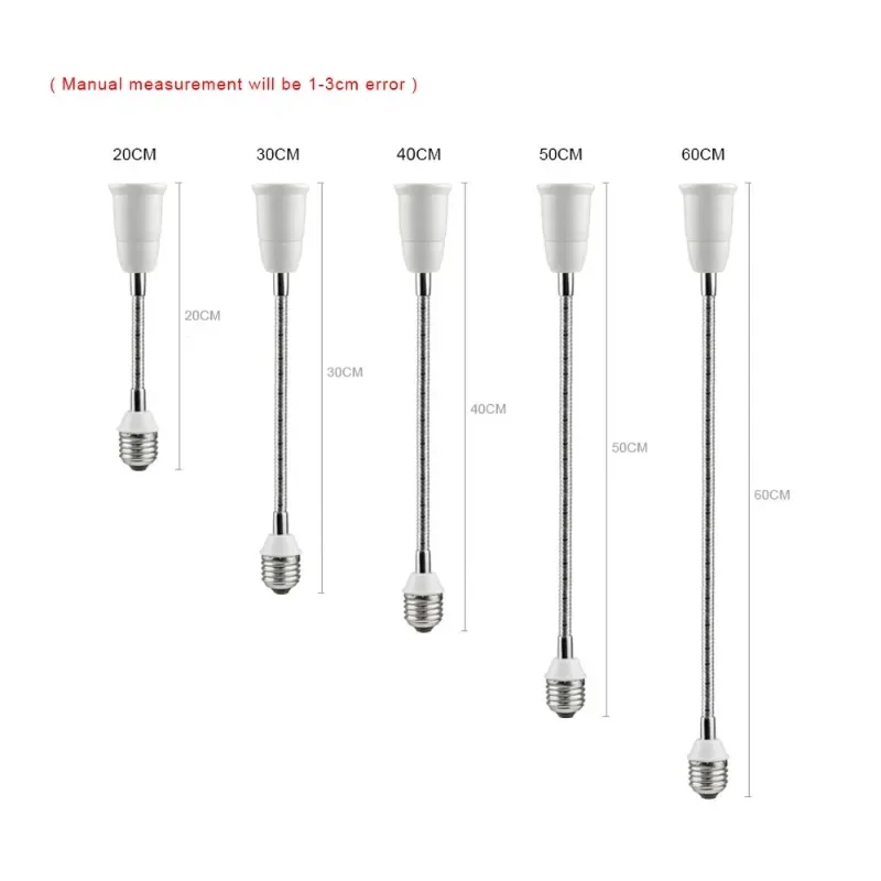 Experience a seamless lighting setup with this flexible extension lamp holder. Designed for easy connection, it allows you to extend and adjust your lighting angles effortlessly. Crafted with durable ABS plastic and metal, this adapter ensures stability and longevity. Its small and lightweight design offers excellent flexibility, making it perfect for various lighting configurations in your home or workspace. Whether you need to adapt an E26 bulb to an E27 socket or create multi-position lighting solutions, this converter provides reliable performance. Its white finish blends well with different decor styles, while the adjustable length options (20cm to 60cm) help you achieve just the right lighting effect. Simplify your lighting projects with this versatile accessory.