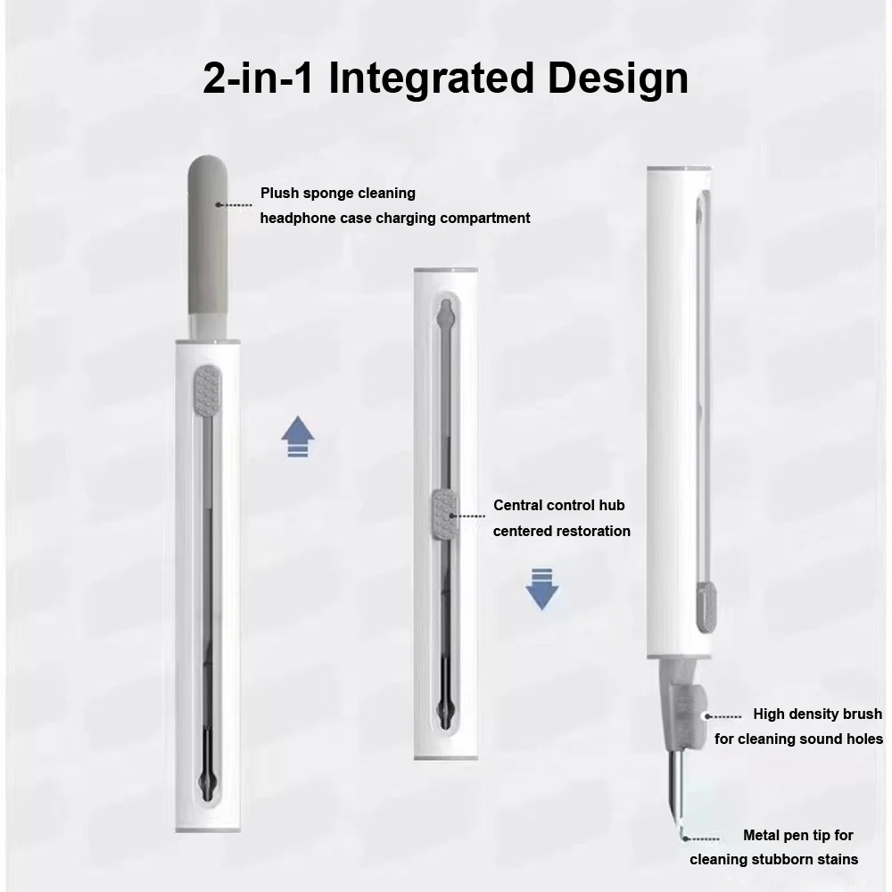 Keep your earbuds in pristine condition with this 5-inch telescopic 3-in-1 cleaning kit, featuring a dual-head design with a soft brush, a metal cleaner pen, and a compact cleaner pen. Perfect for AirPods Pro 2, 3, 4, Galaxy Buds 3, and Xiaomi earbuds, it effectively removes dirt and build-up, ensuring optimal hygiene and performance. The sleek, minimalist design offers a modern, functional tool that fits comfortably in your hand, making routine cleaning quick and effortless. Elevate your earbud maintenance routine with this high-quality, chemical-free cleaning device, and enjoy consistently clear sound and improved longevity for your favorite wireless earbuds.