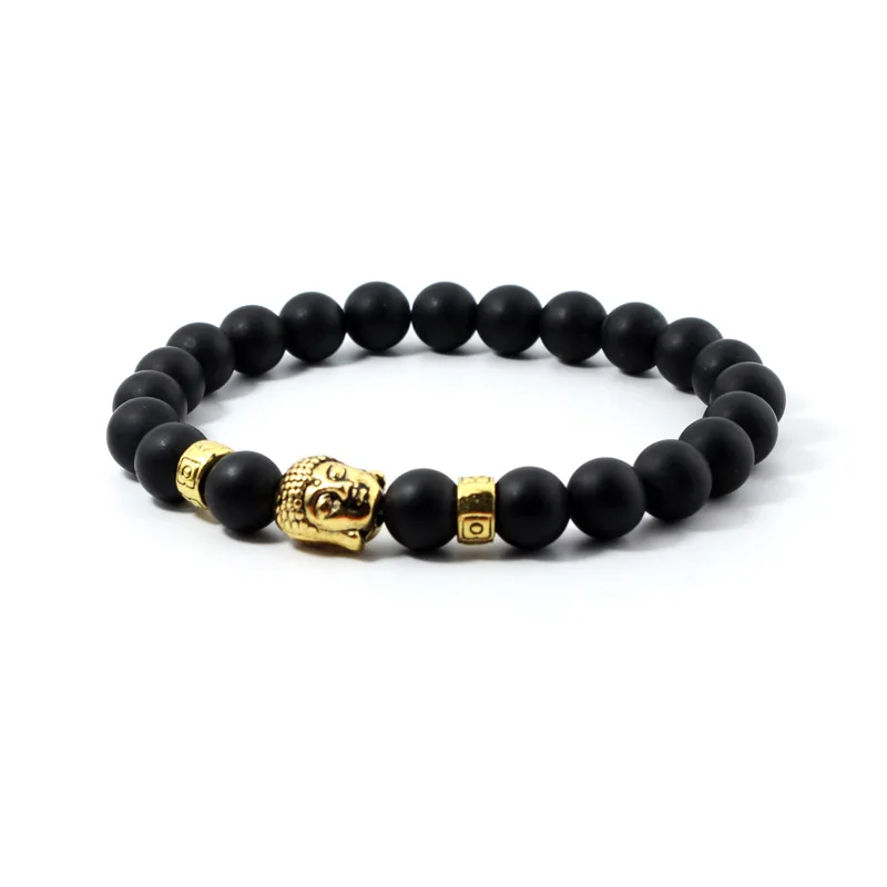 - Features a detailed gold-colored Buddha head charm as the focal point, symbolizing mindfulness, tranquility, and spiritual harmony in a fashionable accessory.