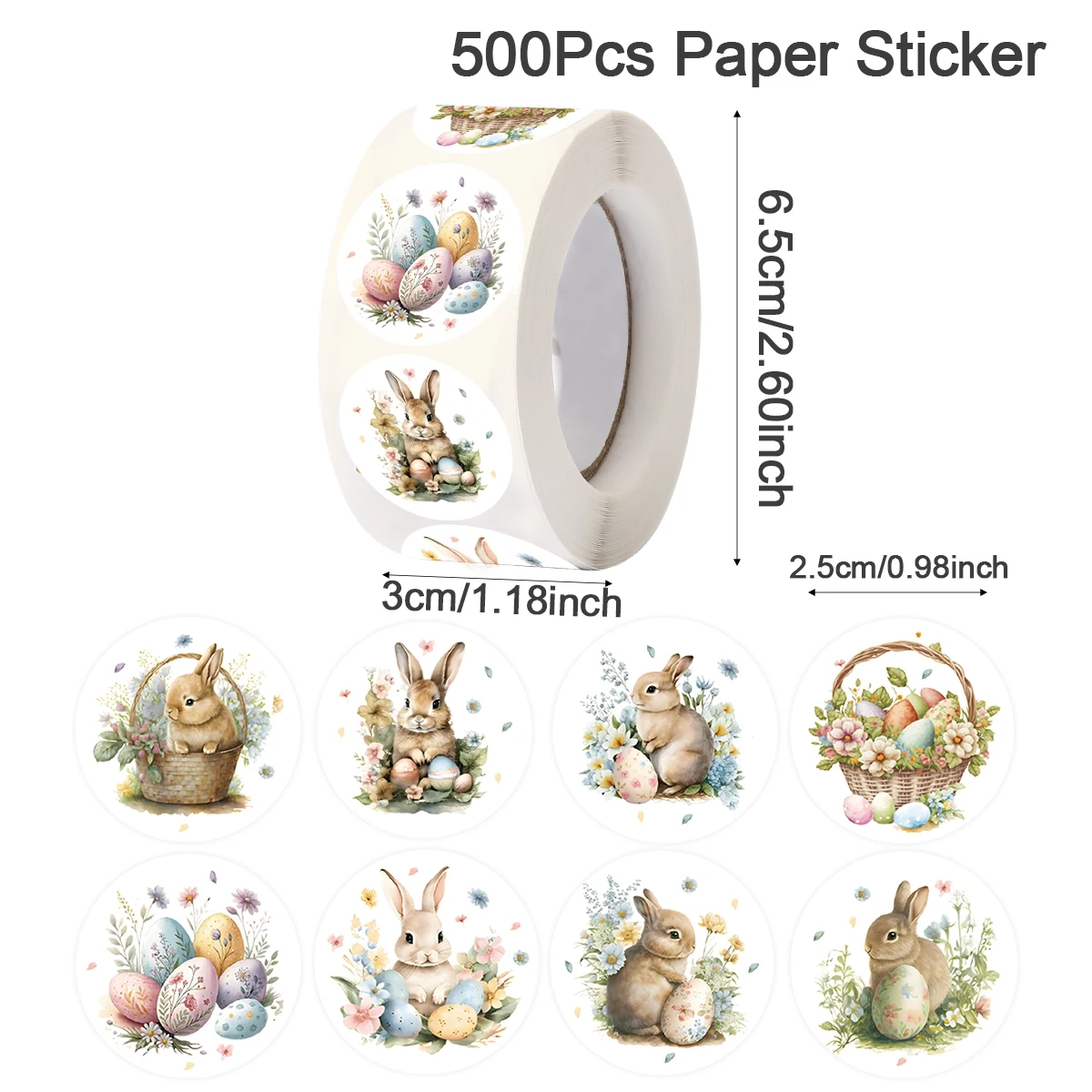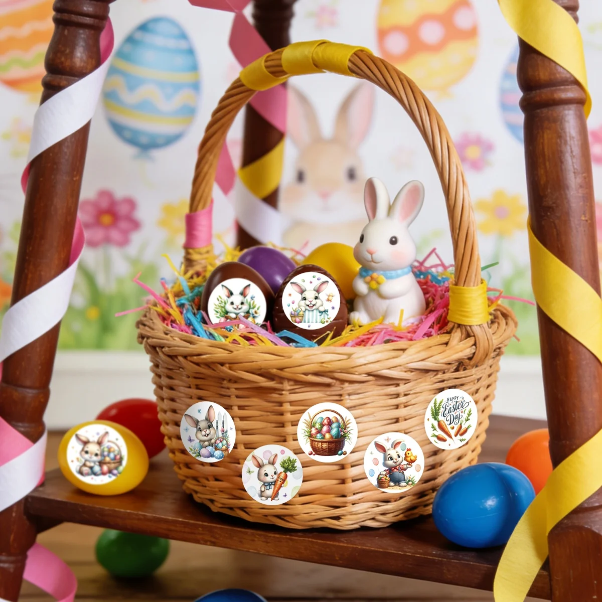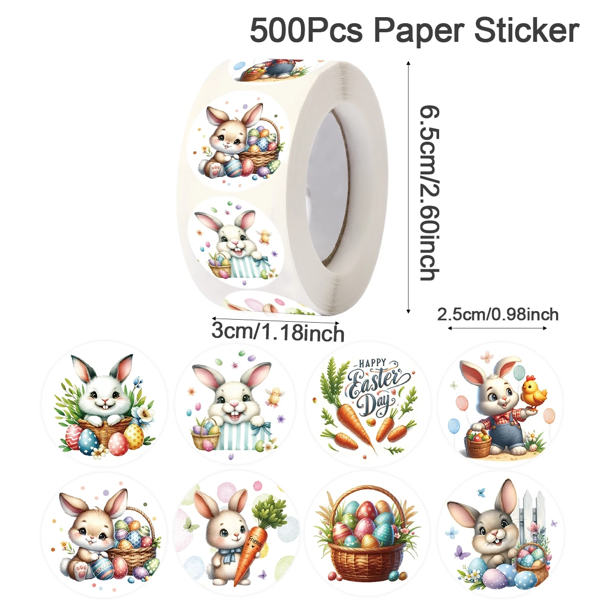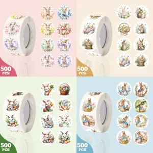 - This set contains 500 round stickers with vivid Easter-themed cartoon bunny, egg, and basket designs, ideal for decorating cards, invitations, or gift packaging for Easter celebrations.
