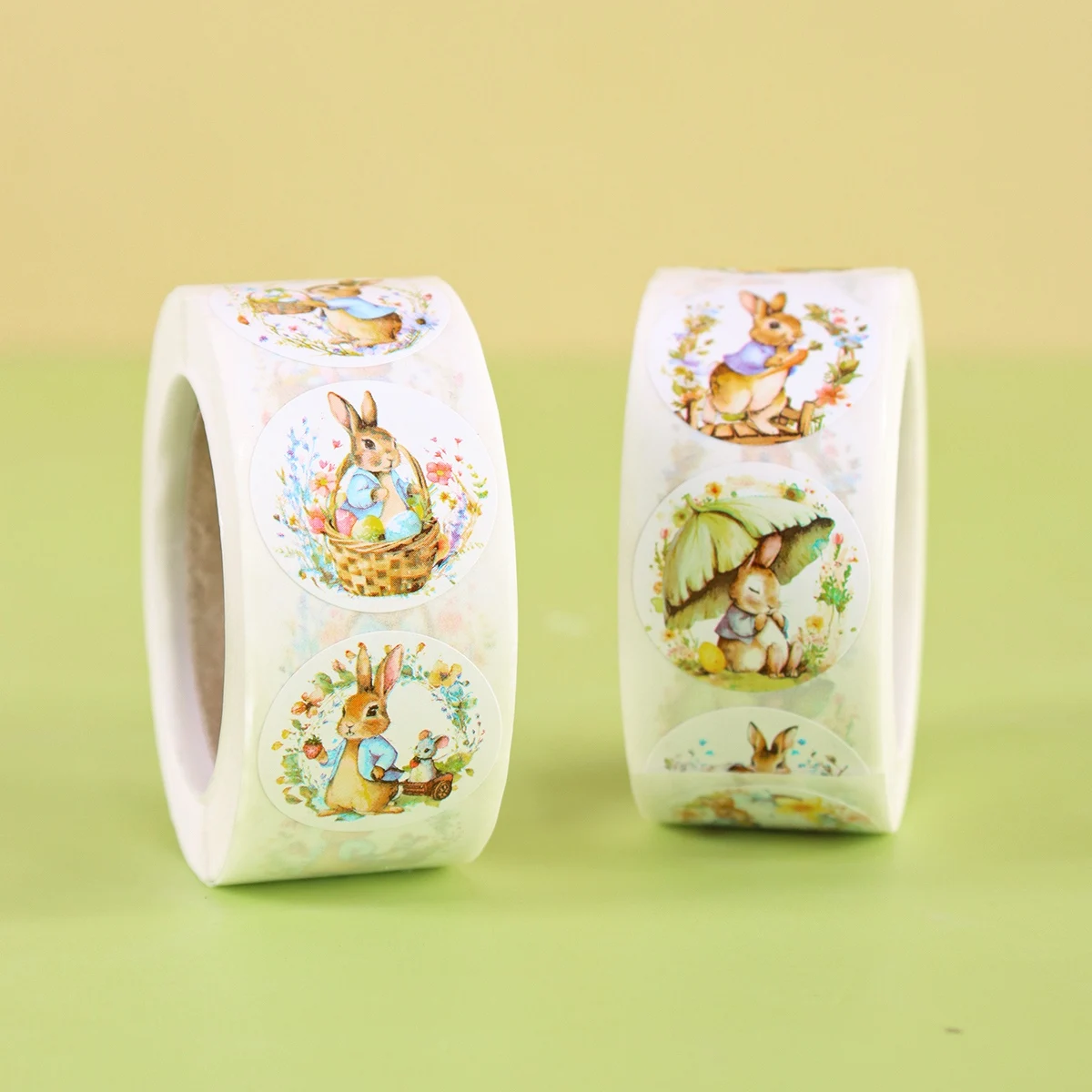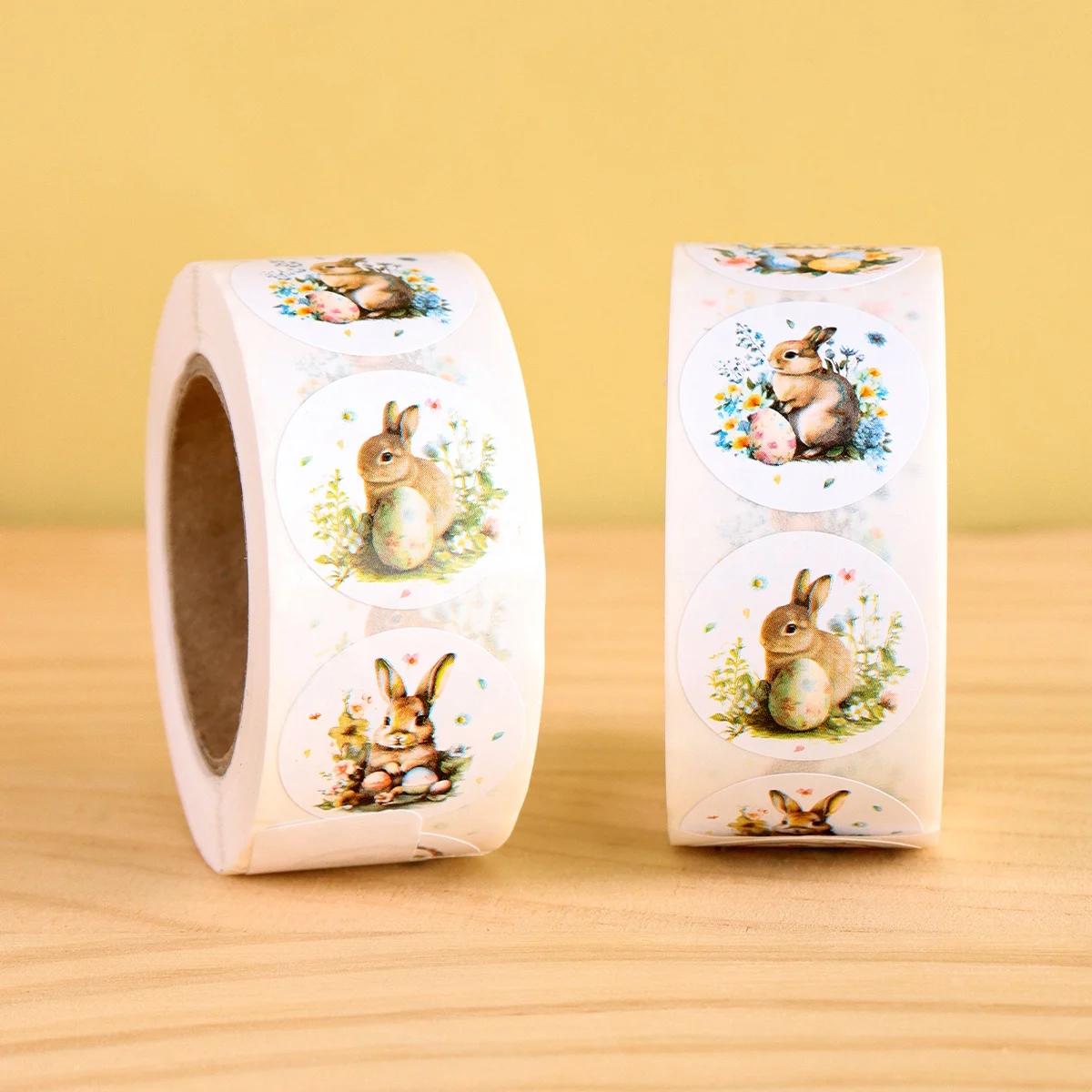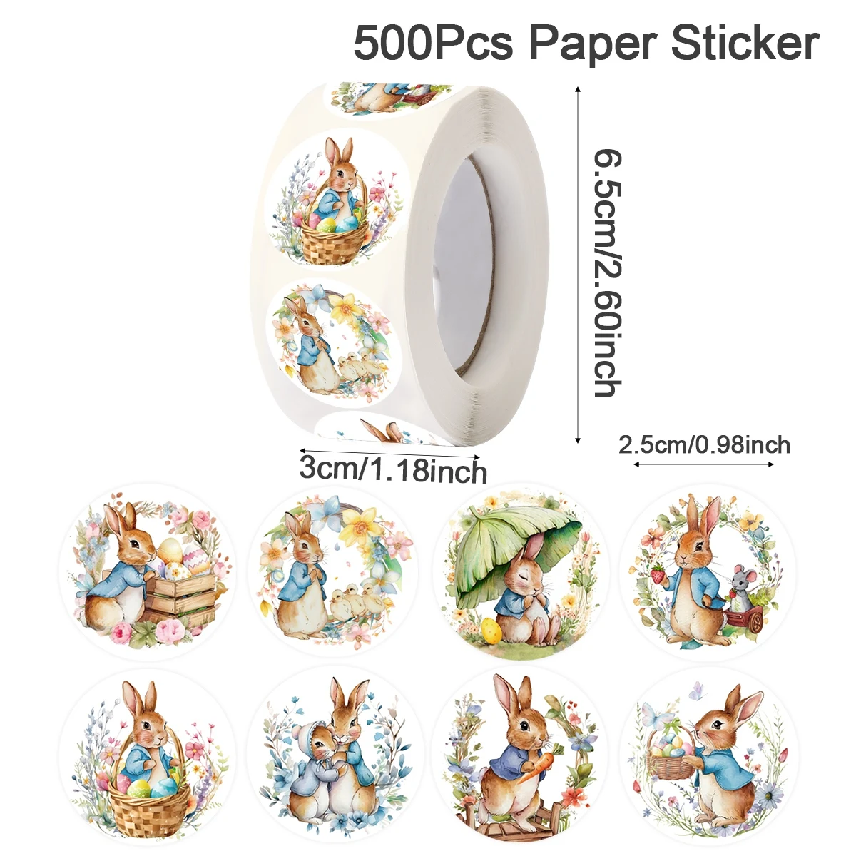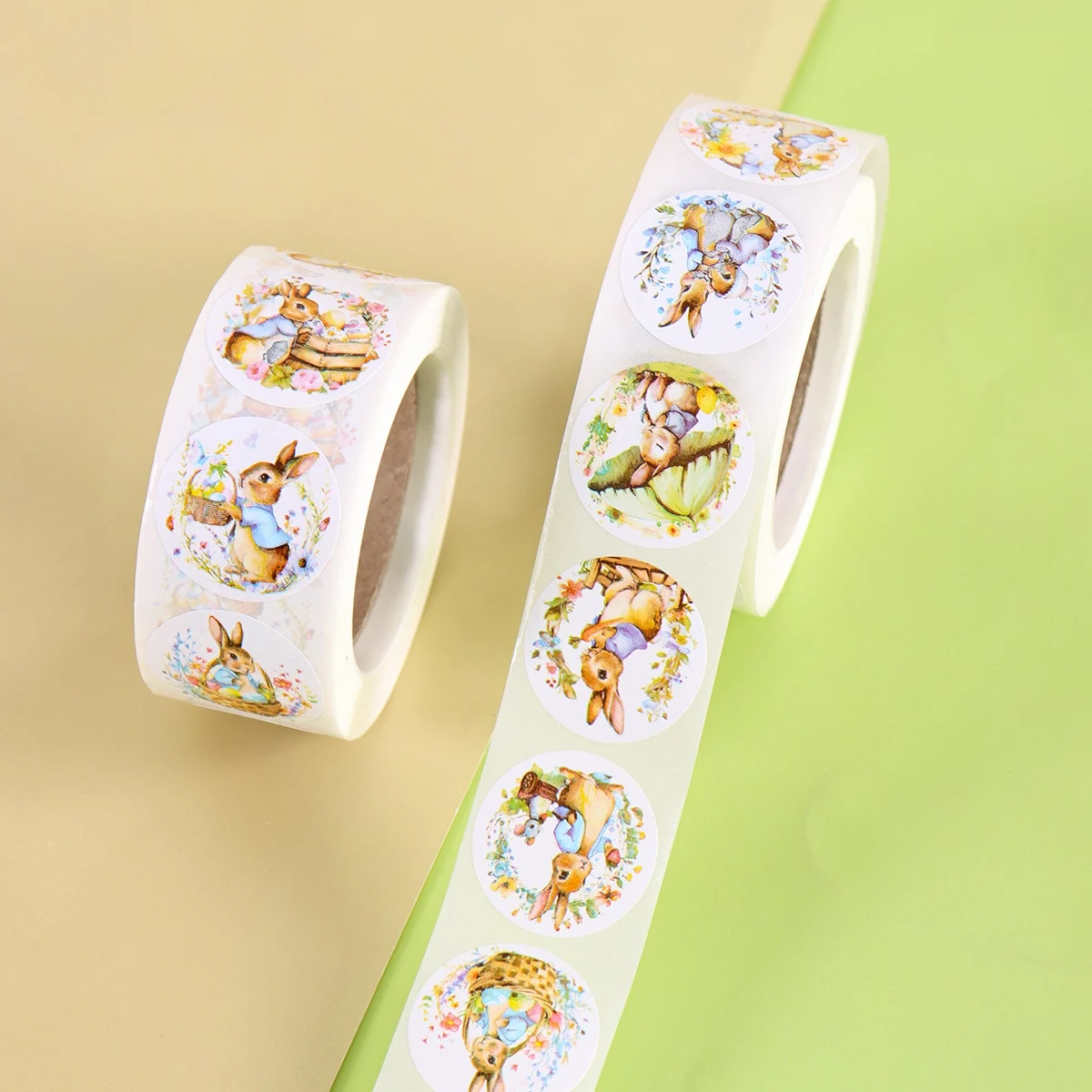 - This set contains 500 round stickers with vivid Easter-themed cartoon bunny, egg, and basket designs, ideal for decorating cards, invitations, or gift packaging for Easter celebrations.