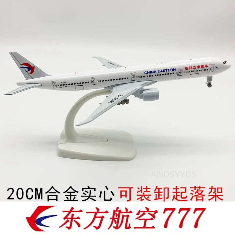 This 20 cm scale model of a B777 aircraft by Eastern Airlines is crafted from high-quality die-cast alloy with a sleek, polished finish and vibrant paintwork that captures intricate details such as windows, engine intakes, and small flaps. Featuring a 1/400 scale, it includes removable wings and landing gear for easy transport and assembly, making it perfect for display, collection, or gifting. The realistic design emphasizes craftsmanship and accuracy, with a smooth, glossy surface and refined proportions that evoke the authentic look of a modern aircraft. Its minimalist base supports the aircraft in a slight nose-up angle, ideal for aviation enthusiasts and collectors alike.