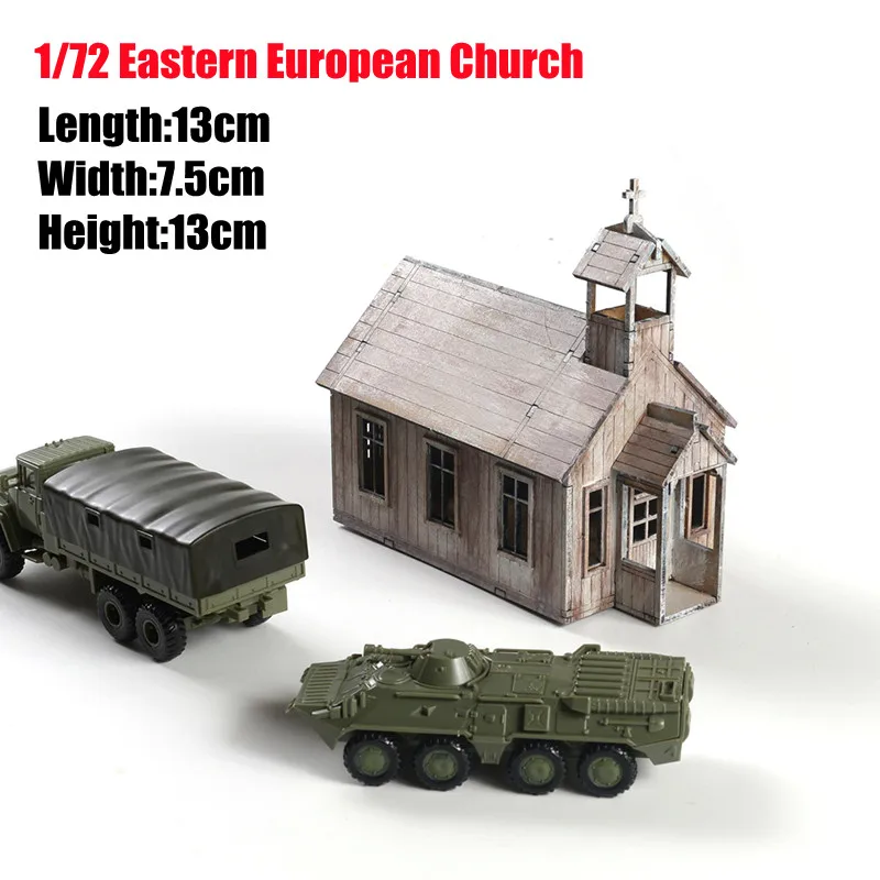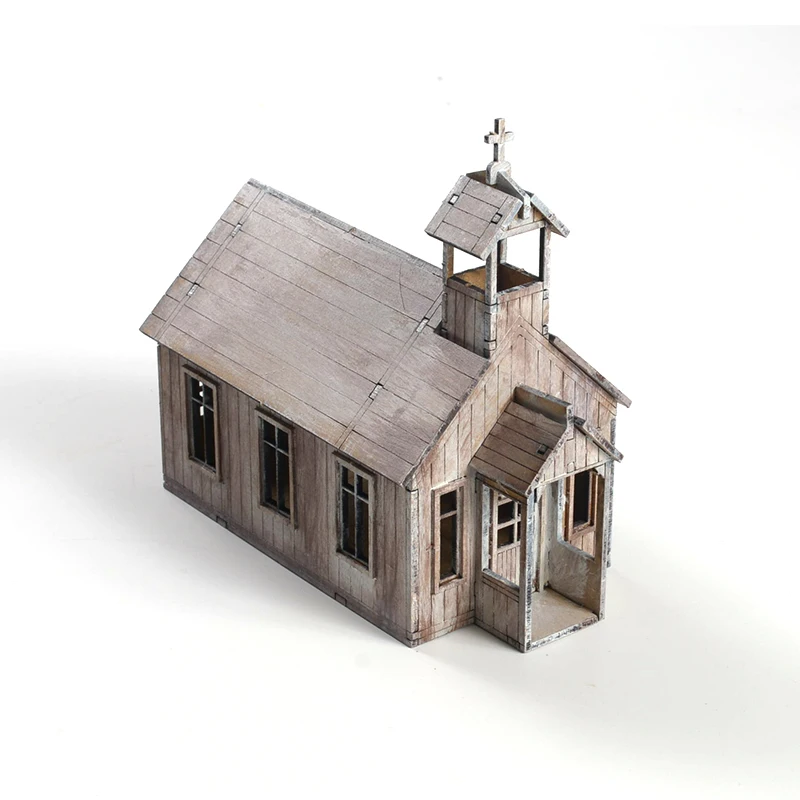 Immerse yourself in craftsmanship with this 1/72 scale wooden assembly model of an Eastern European church, perfect for landscape architecture enthusiasts. Crafted from 50 precisely cut wooden pieces, this DIY set features a charming domed church design in a natural wood finish that highlights the wood grain and handcrafted detailing. Its rustic, vintage aesthetic includes a pitched roof resembling weathered wooden planks, narrow vertical windows, and a quaint porch with a triangular gabled roof. A small bell tower topped with a cross completes the authentic look. Designed for ages 12 and above, this unisex model offers an engaging project that adds character to any miniature landscape display.