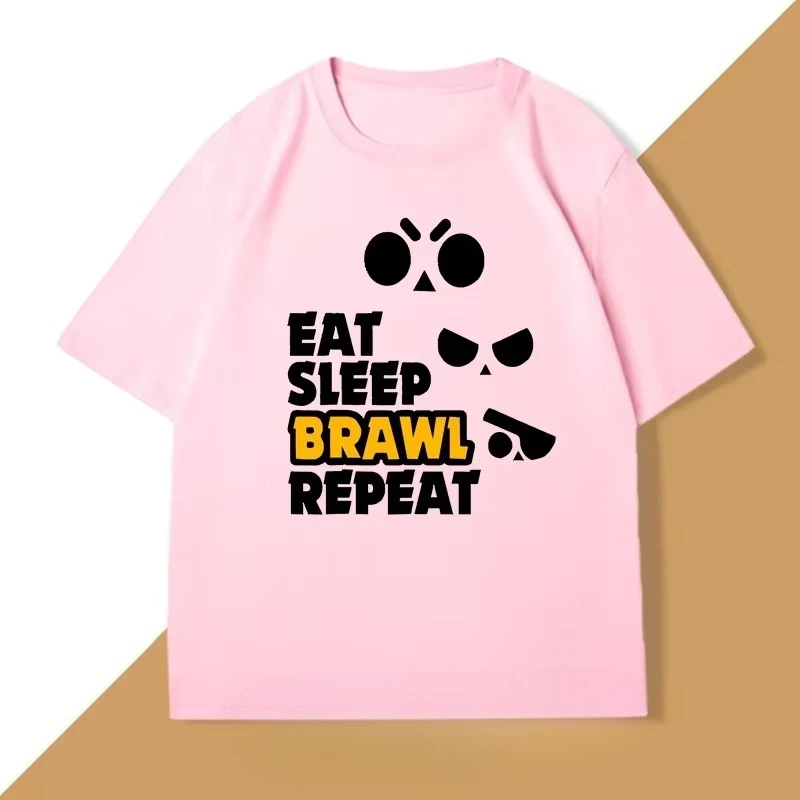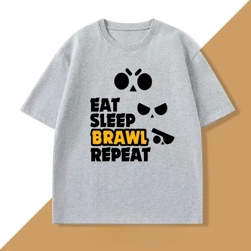 Experience the perfect blend of style and personality with this eye-catching black T-shirt. Crafted from lightweight, breathable cotton, it offers ultimate comfort for all-season wear. The graphic design on the front features minimalistic, cartoonish white eyes and facial features, giving it a playful yet striking appearance. The bold, block lettering “EAT SLEEP BRAWL REPEAT” in white and vibrant orange instantly captures attention, making it ideal for gaming enthusiasts and casual fashion lovers alike. Its modern, trendy aesthetic combines clean lines with pops of color, turning everyday wear into a statement piece. Whether you're relaxing at home or meeting friends, this T-shirt elevates your style effortlessly while remaining comfortable throughout your day.