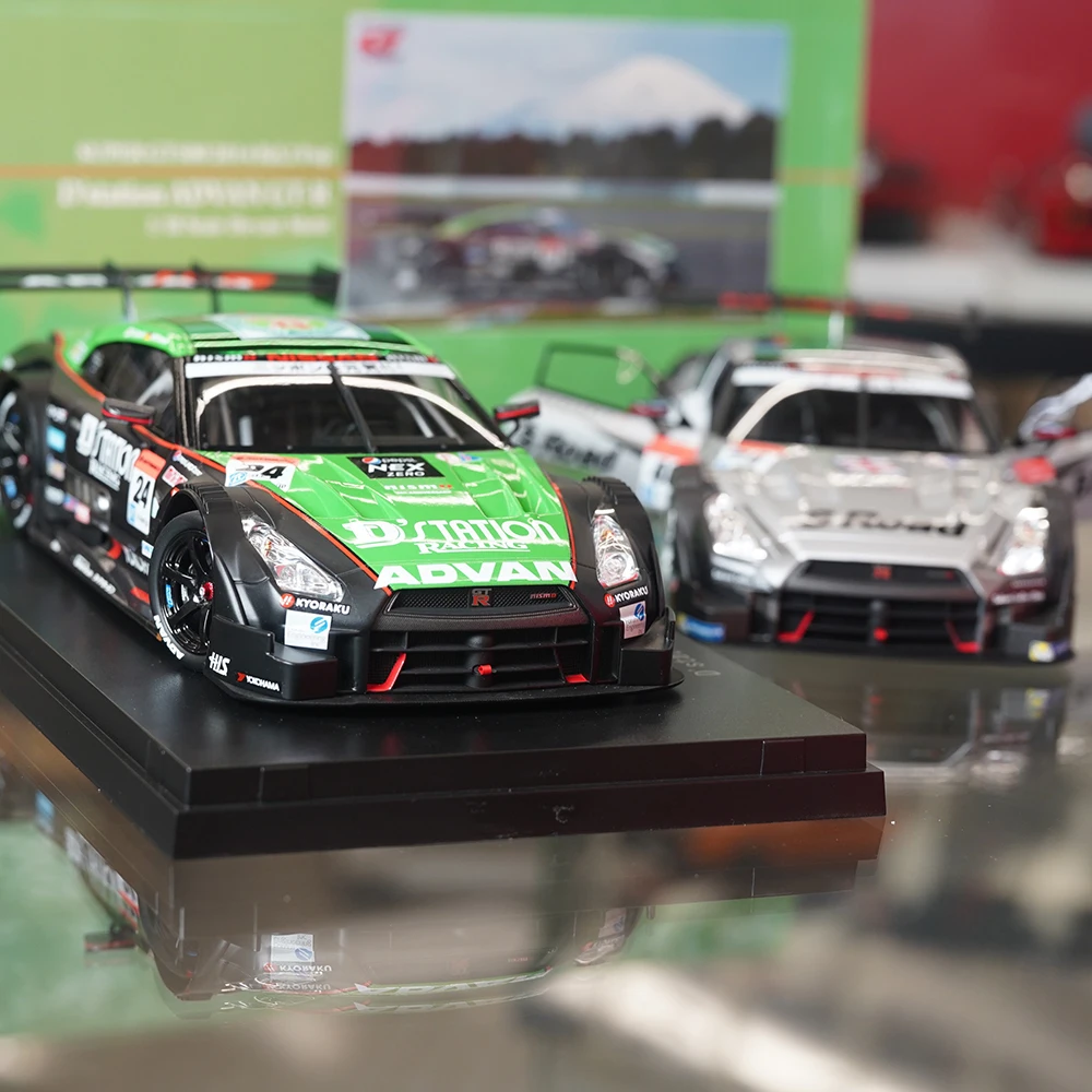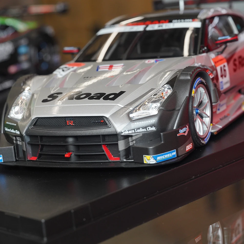 Experience the thrill of racing with this highly detailed 1:18 scale die-cast model of the legendary Ebbro GTR Super GT500 2014. Measuring approximately 26 cm long, 11 cm wide, and 9 cm high, this model captures every aerodynamic curve and sleek line of the original racing car. Its glossy silver and black finish, complemented by vibrant sponsor decals and bold lettering, makes it a standout display piece. With realistic openable doors, rotatable wheels with detailed rims, and a prominent rear wing spoiler, this model exudes authenticity and sporty elegance. Made from a sturdy alloy, plastic, and rubber components, it’s perfect for collectors and racing enthusiasts alike, bringing the high-speed excitement to your collection or display.