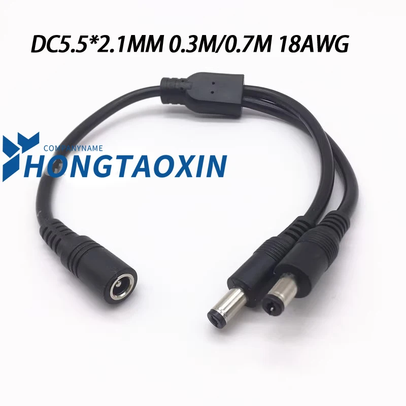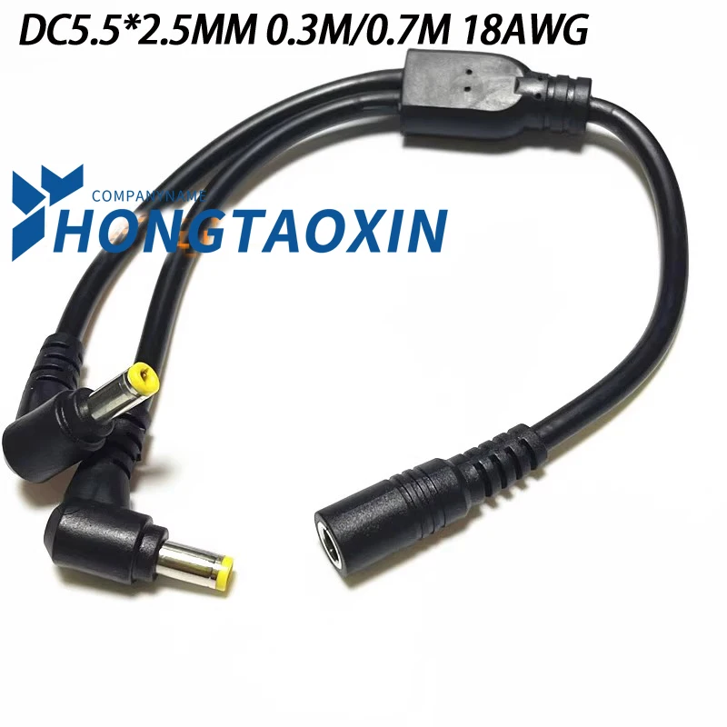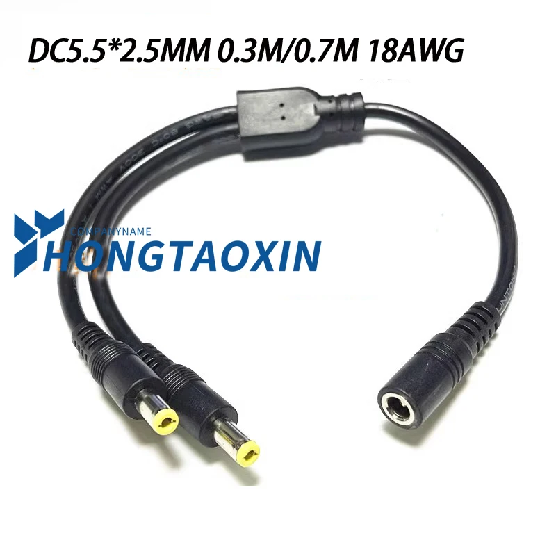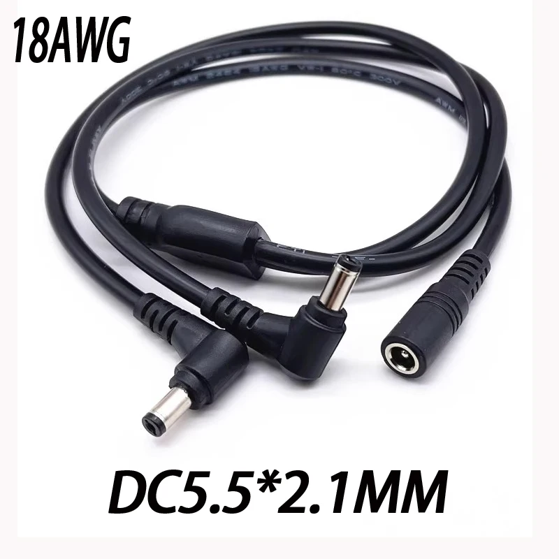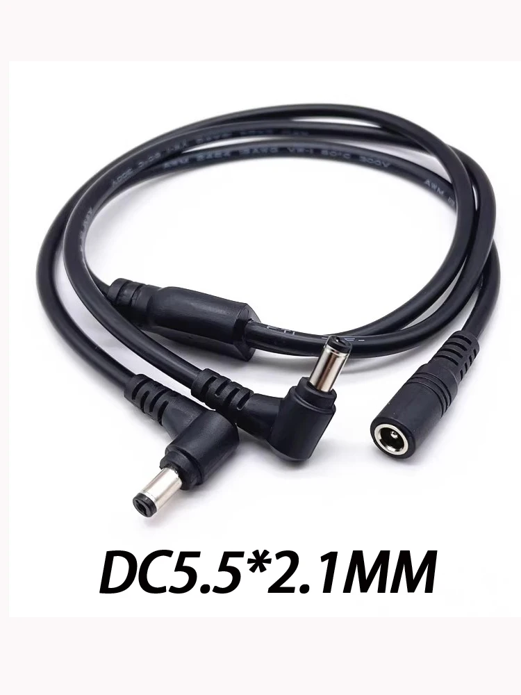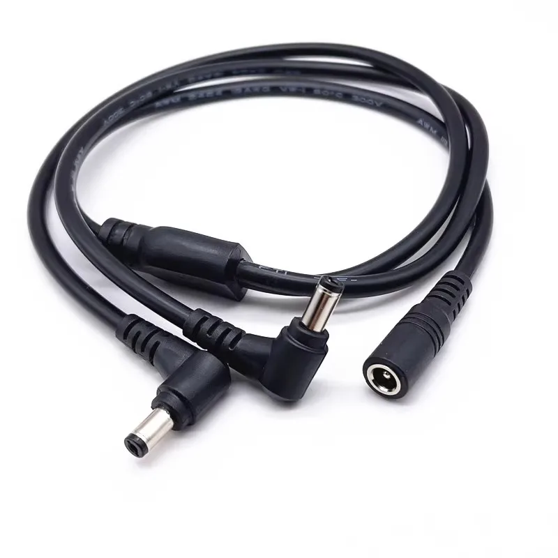 - Features a male DC connector (5.5mm outer, 2.1mm inner diameter) that splits into two female connectors (5.5mm outer, 2.5mm inner diameter), for versatile device connections.