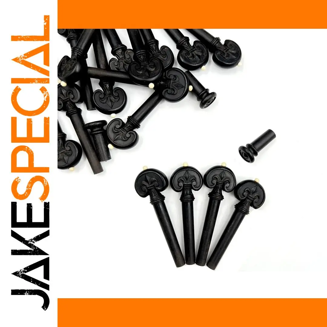 Imagine elevating your violin with a set of finely crafted, high-quality tuning pegs that blend durability with sophisticated style. Made from natural Indonesian grade A ebony, these pegs showcase a sleek black finish, accentuated by intricate inlay decorations on the head for a touch of elegance. The smooth, flat surface finish ensures easy operation and a perfect fit, providing stability and precise tuning every time. The small, cream-colored endpins add a subtle decorative contrast and enhance aesthetic appeal. Ideal for professional repairs or customizing your instrument, these pegs are portable, practical, and designed to complement the natural grain and craftsmanship of your violin. Let your instrument exude both beauty and performance with these premium fittings.