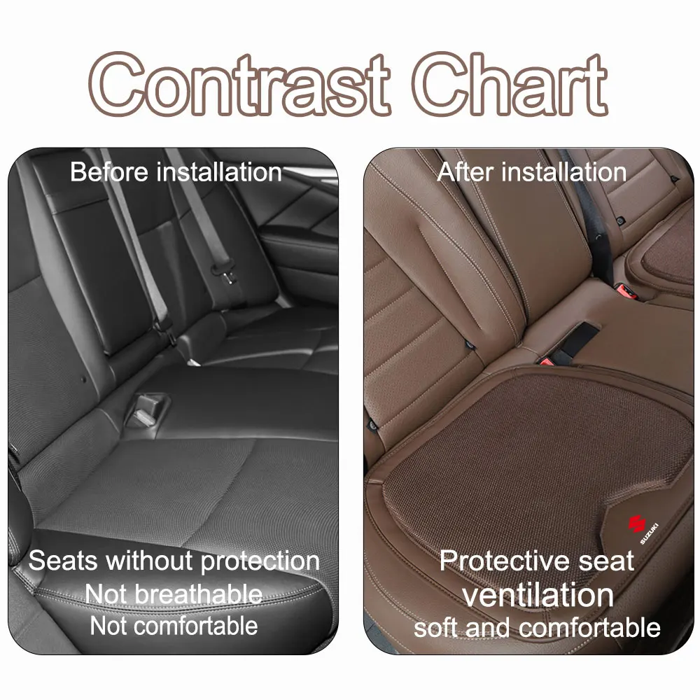 Experience enhanced driving comfort with this sleek car seat cushion designed to fit a range of Suzuki models. Made from eco-friendly ice silk leather, it offers a smooth, breathable surface that feels soft against your skin. With a textured, mesh-like top layer, it promotes airflow, helping you stay comfortable during long trips. Its elegant dark brown color, complemented by precision stitching, adds a sophisticated touch to your vehicle’s interior. The cushion’s anti-slip rubber underside with small protruding particles ensures it stays securely in place while driving or entering/exiting your vehicle. Durable and versatile, this cushion provides exceptional protection against wear, scratches, and dirt, keeping your seat in pristine condition for years to come. Its clean, modern design combines style with practicality for daily use.