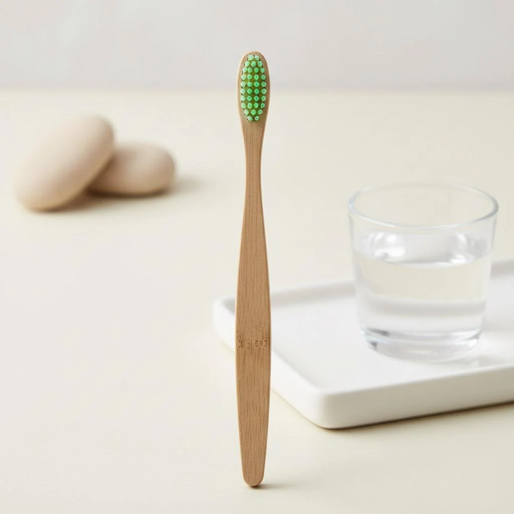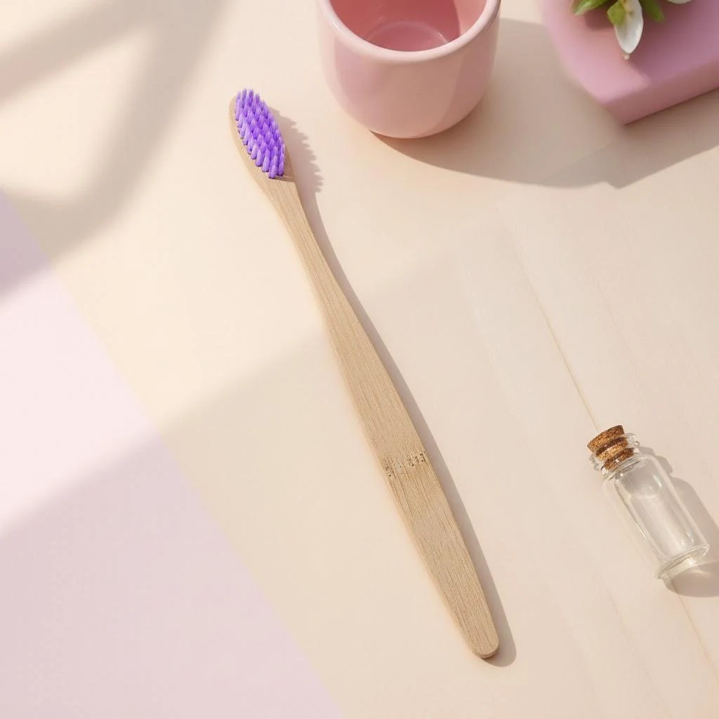 Enhance your oral hygiene routine with this thoughtfully designed bamboo toothbrush. Its natural materials and vibrant bristle colors will motivate you to maintain healthy habits while respecting the environment. Imagine the satisfaction of maintaining a fresh smile using a product crafted with sustainability in mind, and feel proud of choosing an eco-conscious alternative every day. This toothbrush is more than just a hygiene tool; it's a statement of your commitment to a greener lifestyle. Invest in your health and the planet with this beautiful, reliable, and environmentally friendly toothbrush.