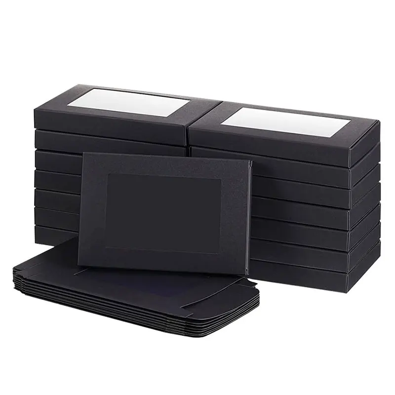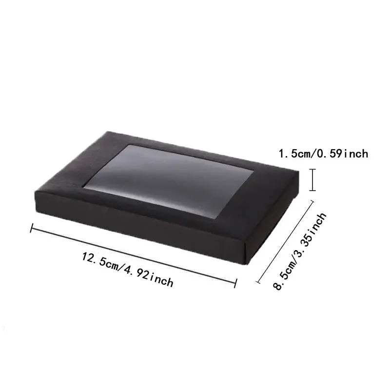 Experience versatile elegance with these 30 or 50 small paperboard gift boxes, ideal for weddings, parties, holidays, and retail displays. Available in classic white, black, and khaki, each box features a clean rectangular design with a transparent window on the top, allowing a glimpse of your carefully chosen contents. Perfect for craft projects, wedding favors, candies, or small gifts, these boxes measure approximately 12.5 x 8.5 x 1.5 centimeters when used as gift bags. Crafted from eco-friendly materials, they offer a minimalist, rustic charm and practical functionality for any special occasion or retail use.