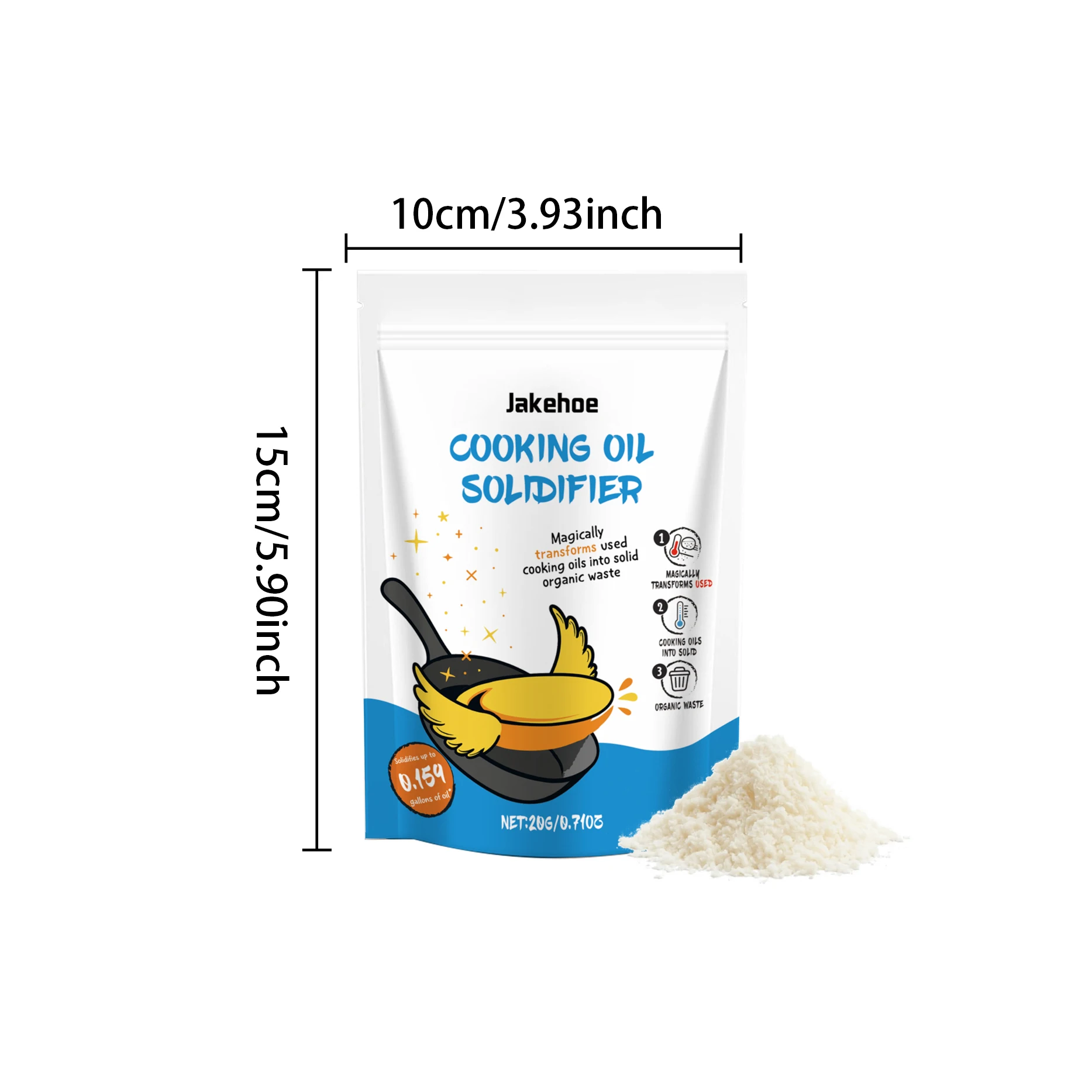 The JAKEHOE Waste Oil Solidifier is a 20g powder designed to quickly and effectively solidify used cooking oil and greases, making disposal simpler and cleaner. Suitable for kitchen waste oil treatment, a single pack can solidify approximately 600ml of waste oil. The environmentally friendly formula is free of concern chemicals and has a shelf life of 3 years. Easy to use—just sprinkle into hot oil, stir until dissolved, and let it cool to form a solid mass for safe disposal. Available in pack sizes of 1, 2, 3, or 5 bags, this product offers a reliable solution for eco-conscious waste management.