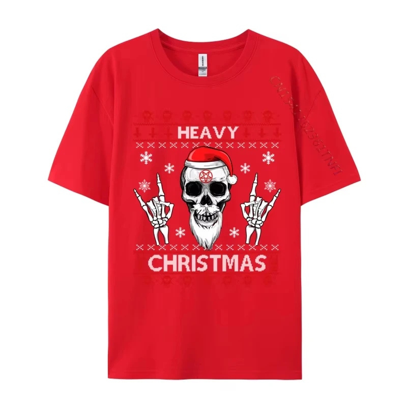 Elevate your holiday wardrobe with this bold, unisex Christmas-themed sweatshirt featuring short sleeves crafted from breathable cotton. The striking graphic design combines a detailed skull with dark shading, a vibrant red Santa hat with white trim, and playful devil horns. Accented by white snowflakes, red skull icons, and the words “HEAVY” and “CHRISTMAS” in pixelated style, this fashion-forward piece blends gothic and punk influences with festive cheer. Available in sizes S to 5XL, its 45 cm to 60 cm length ensures a comfortable fit for all seasons. Perfect for daily wear, it’s easy to care for with machine washable convenience.