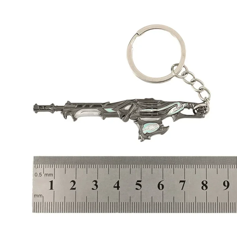 - The keychain is approximately 8 cm long, crafted from zinc alloy with a polished metallic finish in gun-metal color. Its size makes it a noticeable yet lightweight accessory for everyday use.