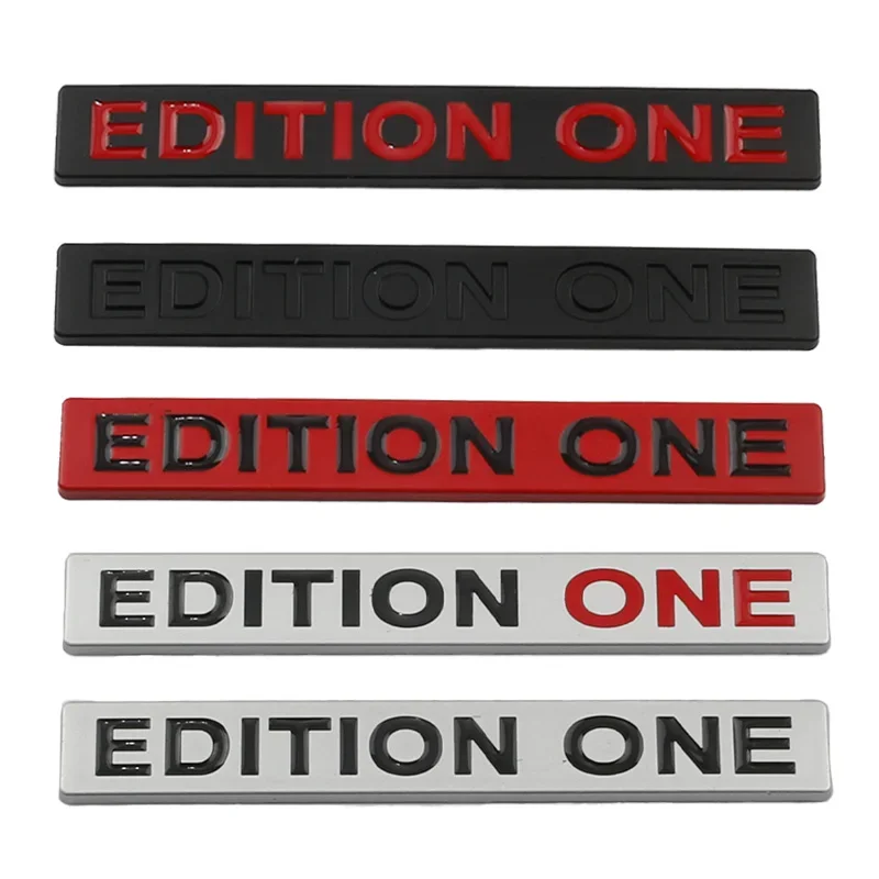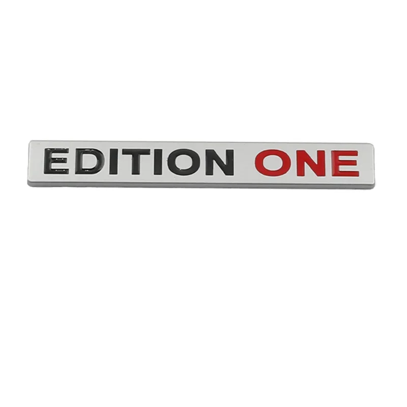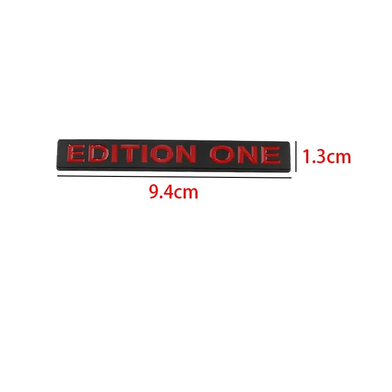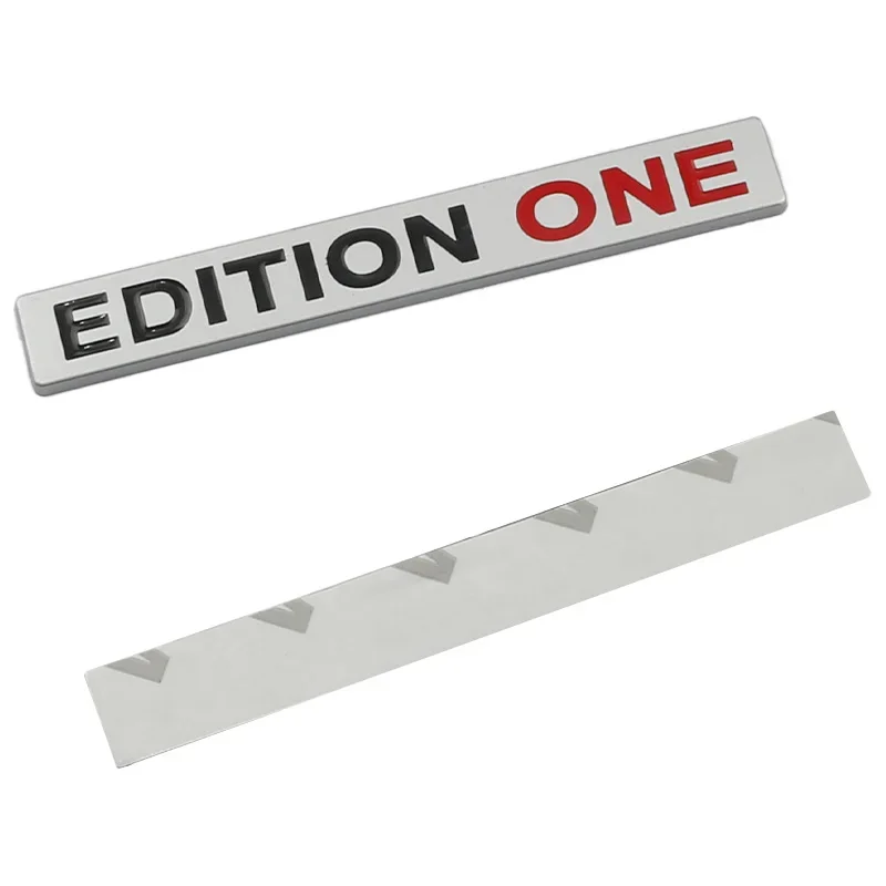 Enhance your vehicle's look with this premium 3D metal car badge sticker from this EDlTION ONE collection. Measuring 9.4 cm in length and 1.3 cm in width, it offers a sleek, durable design perfect for trunk customization. The badge features a striking metallic finish that reflects light beautifully, giving your car an upscale appearance. Available in bold color combinations—white, black, red, and silver—each design emphasizes modern sophistication and ensures your vehicle stands out on the road. The customizable word or letter feature allows for personal expression, making your car truly unique. Easy to install with adhesive backing, this badge is a long-lasting, high-quality accessory that elevates your vehicle's aesthetics with minimal effort.
