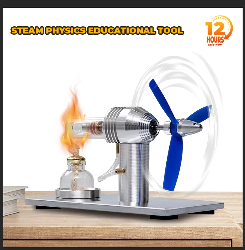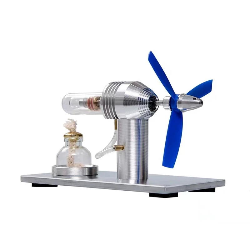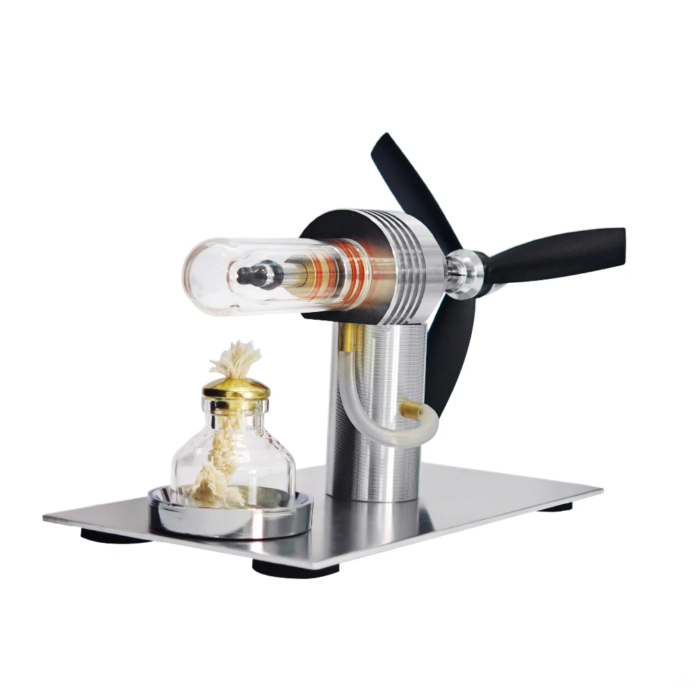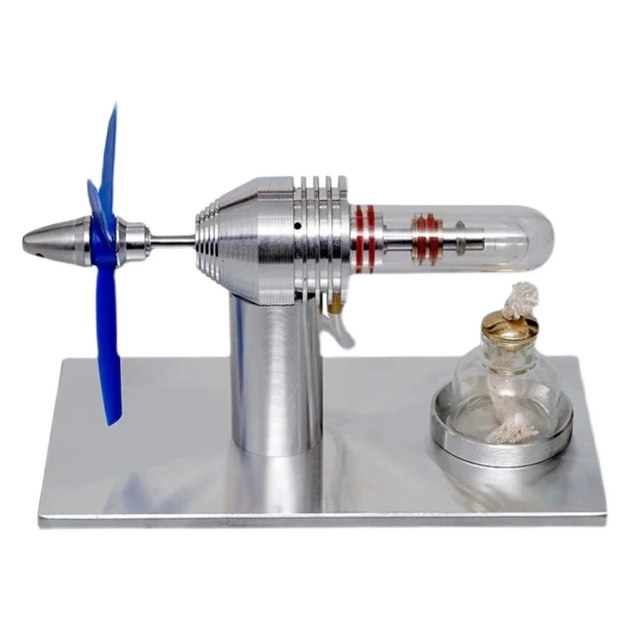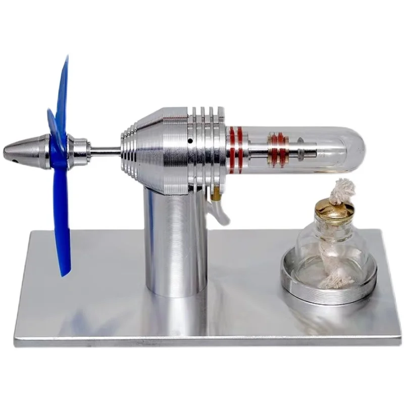 Experience the sleek, modern design of this 1:48 scale Stirling engine generator model, crafted from durable metal in a striking white color. Featuring a cylindrical, ribbed metallic body resembling a polished motor housing and a contrasting black three-blade propeller, this educational toy showcases a transparent chamber revealing intricate internal components, enhancing its technical appeal. With a small cream-colored element atop the miniature boiler, it combines industrial elegance with scientific intrigue. Designed for ages 14 and above, this DIY power generation model is perfect for demonstrations, experiments, and scientific exploration, offering a captivating insight into steam physics and energy conversion.