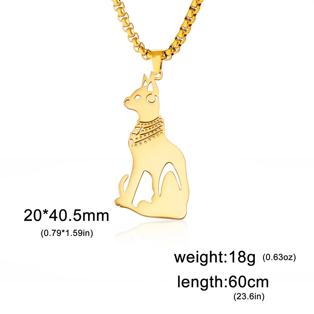 Imagine owning this stunning necklace that celebrates ancient Egyptian artistry with a modern fashion twist. Crafted from durable stainless steel, this vintage-inspired pendant features a beautifully detailed depiction of the Egyptian cat goddess Bastet. Available in rich gold-tone and sleek silver-tone, it adds a touch of mystique and elegance to any outfit. The pendant measures 20mm by 40.5mm, perfect for making a statement without being overwhelming. Its 60cm chain complements the pendant beautifully, providing comfort and versatile styling options. Whether you're attending a party, celebrating a special occasion, or gifting a loved one, this necklace effortlessly combines symbolism, style, and durability to elevate your jewelry collection.