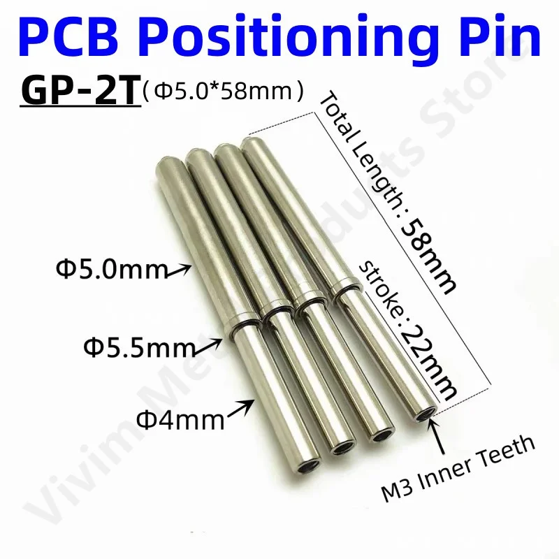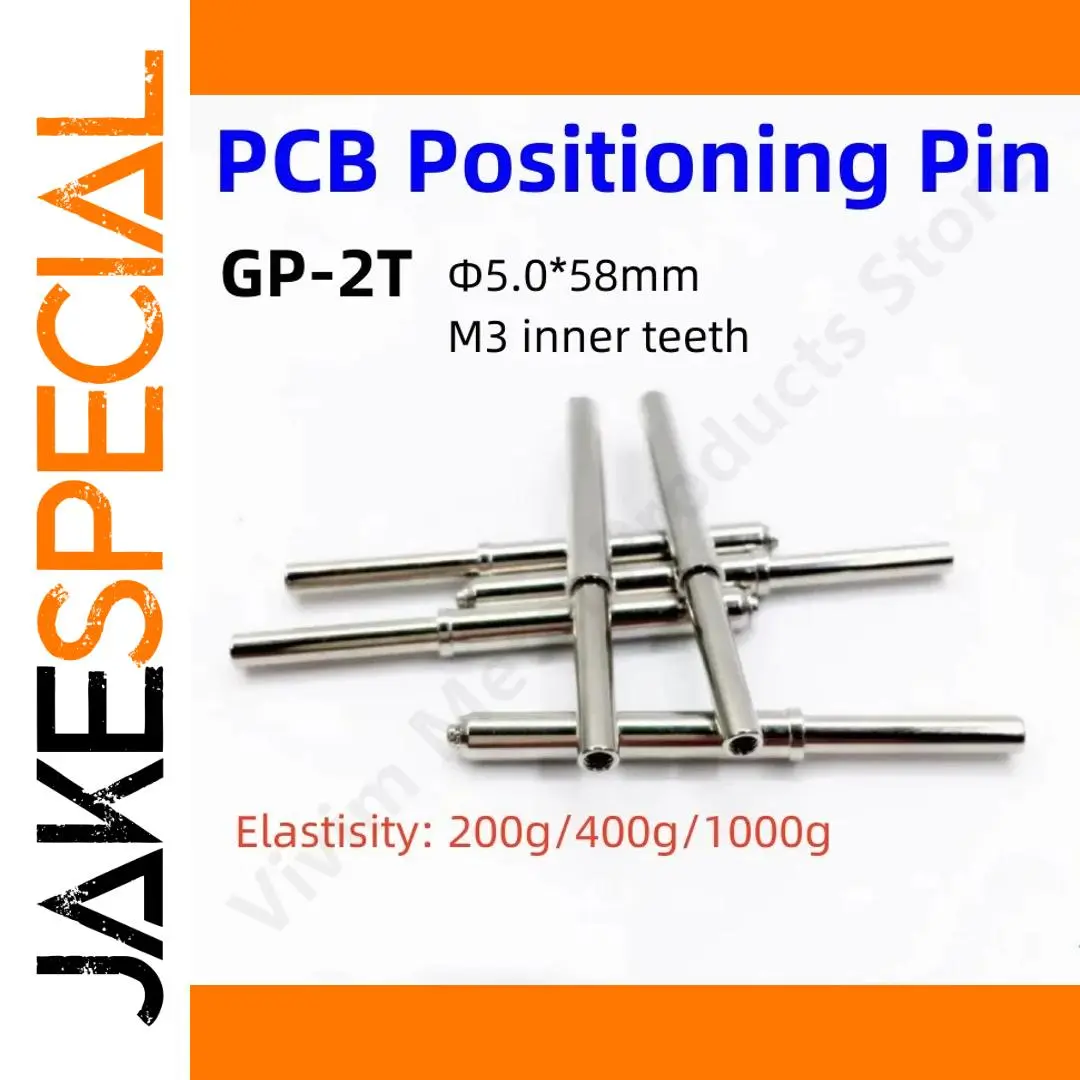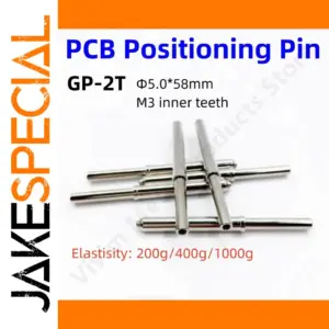 Enhance your PCB assembly and testing with this set of high-precision elastic positioning pins, crafted from durable nickel-plated iron. Each pin measures 58mm in length with a 5.0mm diameter, featuring an M3 screw thread hole at the tip with a maximum diameter of approximately 4.0mm and a stroke of about 22mm. Available in sets of 10 or 50 pieces, these sleek, reflective cylindrical pins come with elastic strengths of 200g, 400g, or 1000g, making them ideal for precise light board positioning and electrical testing applications. Their polished surface ensures durability and consistent performance in high-precision environments.