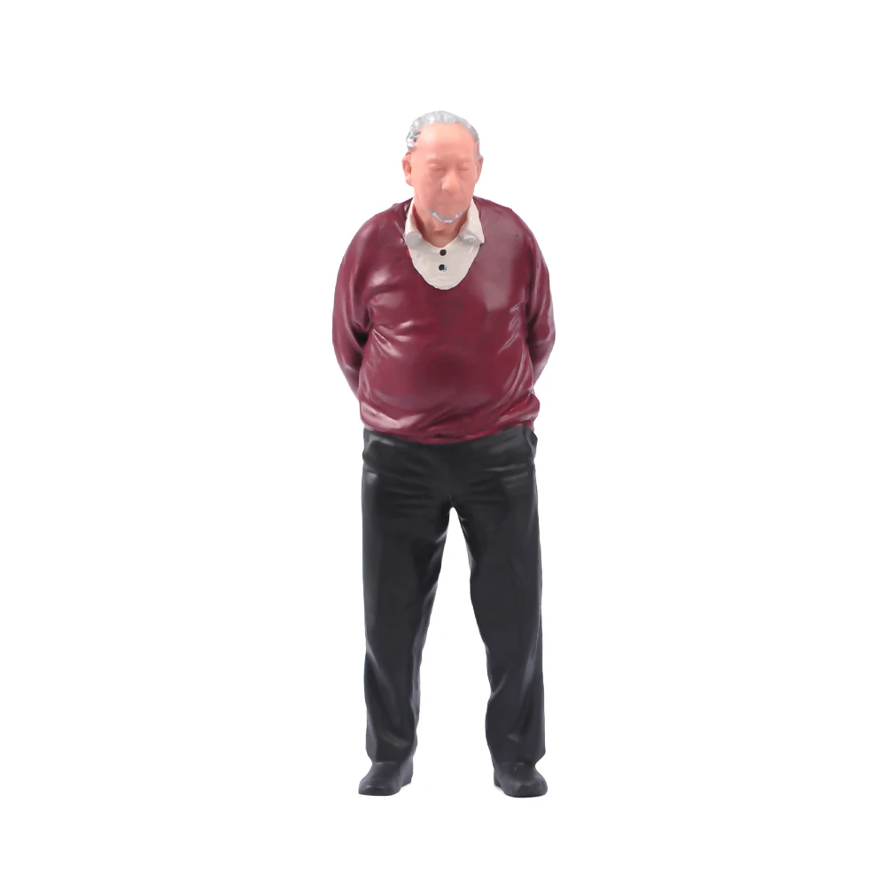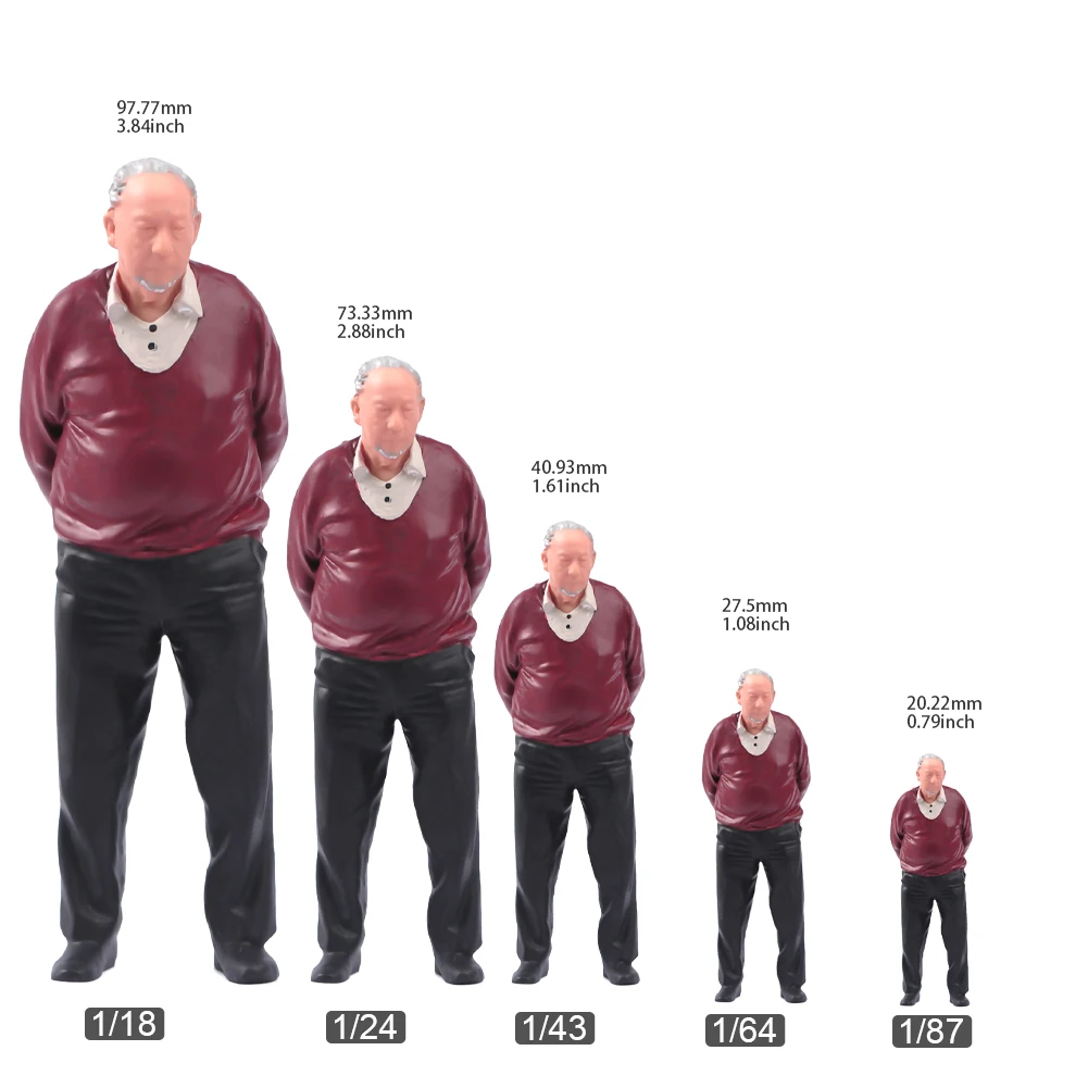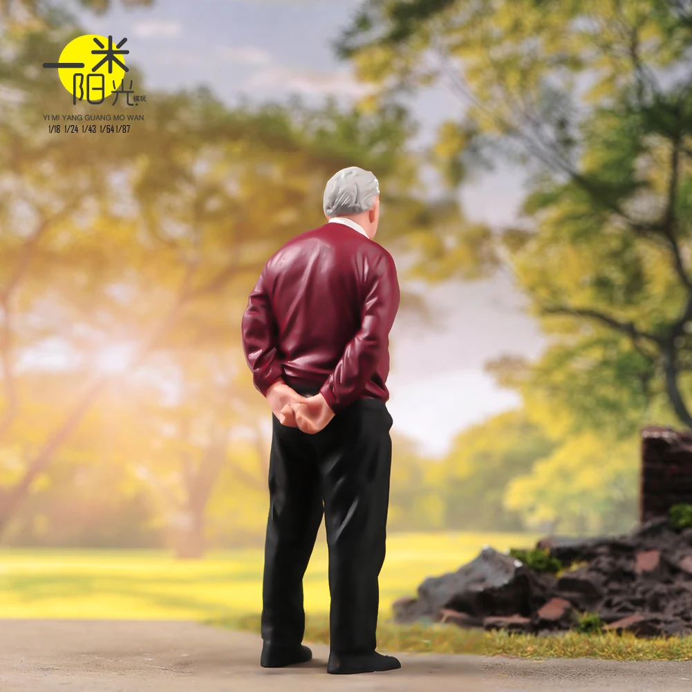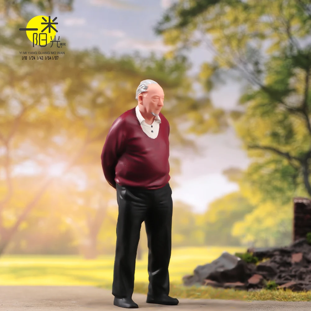 This exquisite miniature model depicts two elderly men, expertly hand-painted for lifelike detail, available in scales of 1/87, 1/64, 1/43, 1/24, and 1/18. The first figure features a round face with gray hair and a textured dark red sweater, while the second sports a fitted gray sweater and a more serious expression. Crafted from durable resin, these figures are designed for collection, display, or micro photography. Each model is a unique piece, coming in color options of painted A, painted B, and unpainted, making them perfect for enhancing any collection with their charming companionship theme.