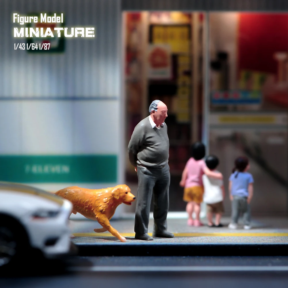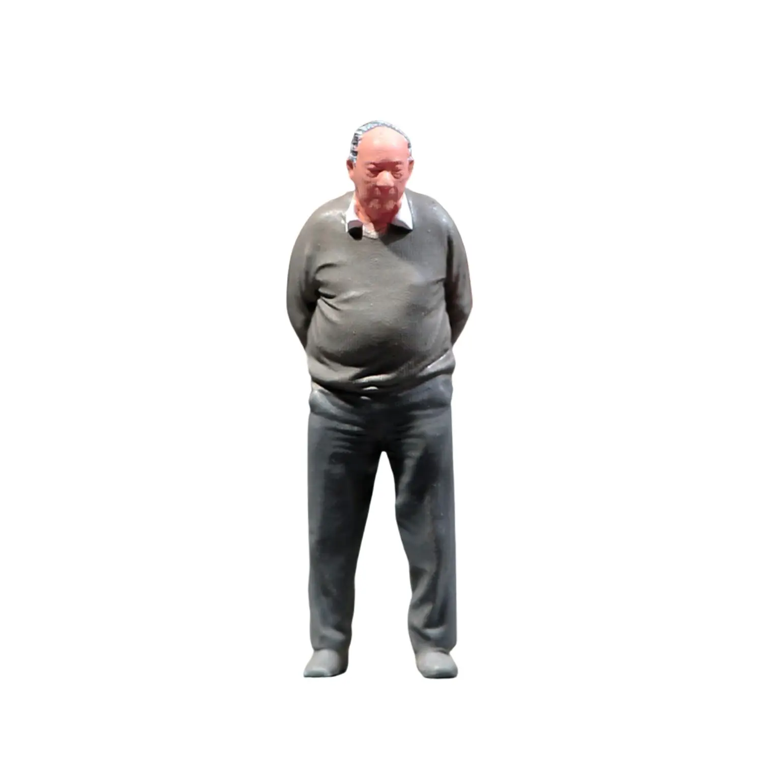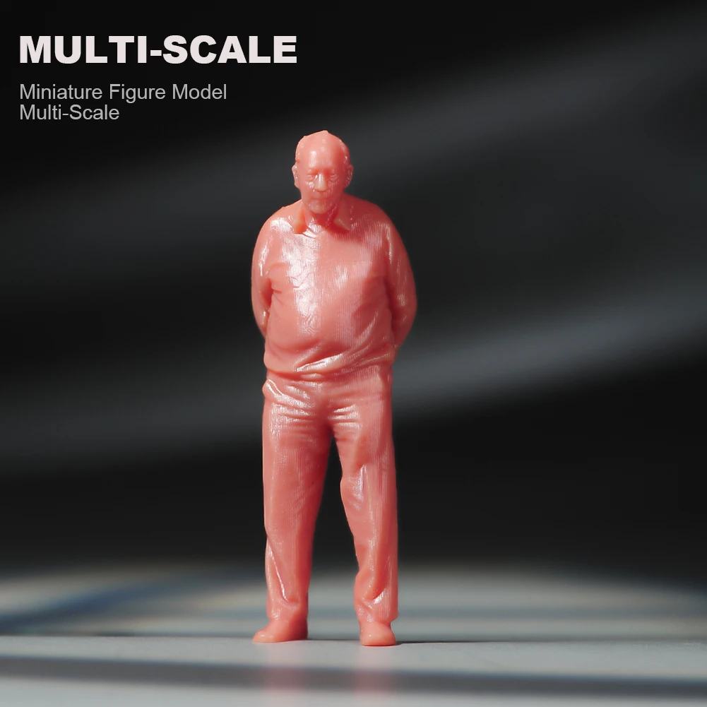 This exquisite miniature model depicts two elderly men, expertly hand-painted for lifelike detail, available in scales of 1/87, 1/64, 1/43, 1/24, and 1/18. The first figure features a round face with gray hair and a textured dark red sweater, while the second sports a fitted gray sweater and a more serious expression. Crafted from durable resin, these figures are designed for collection, display, or micro photography. Each model is a unique piece, coming in color options of painted A, painted B, and unpainted, making them perfect for enhancing any collection with their charming companionship theme.
