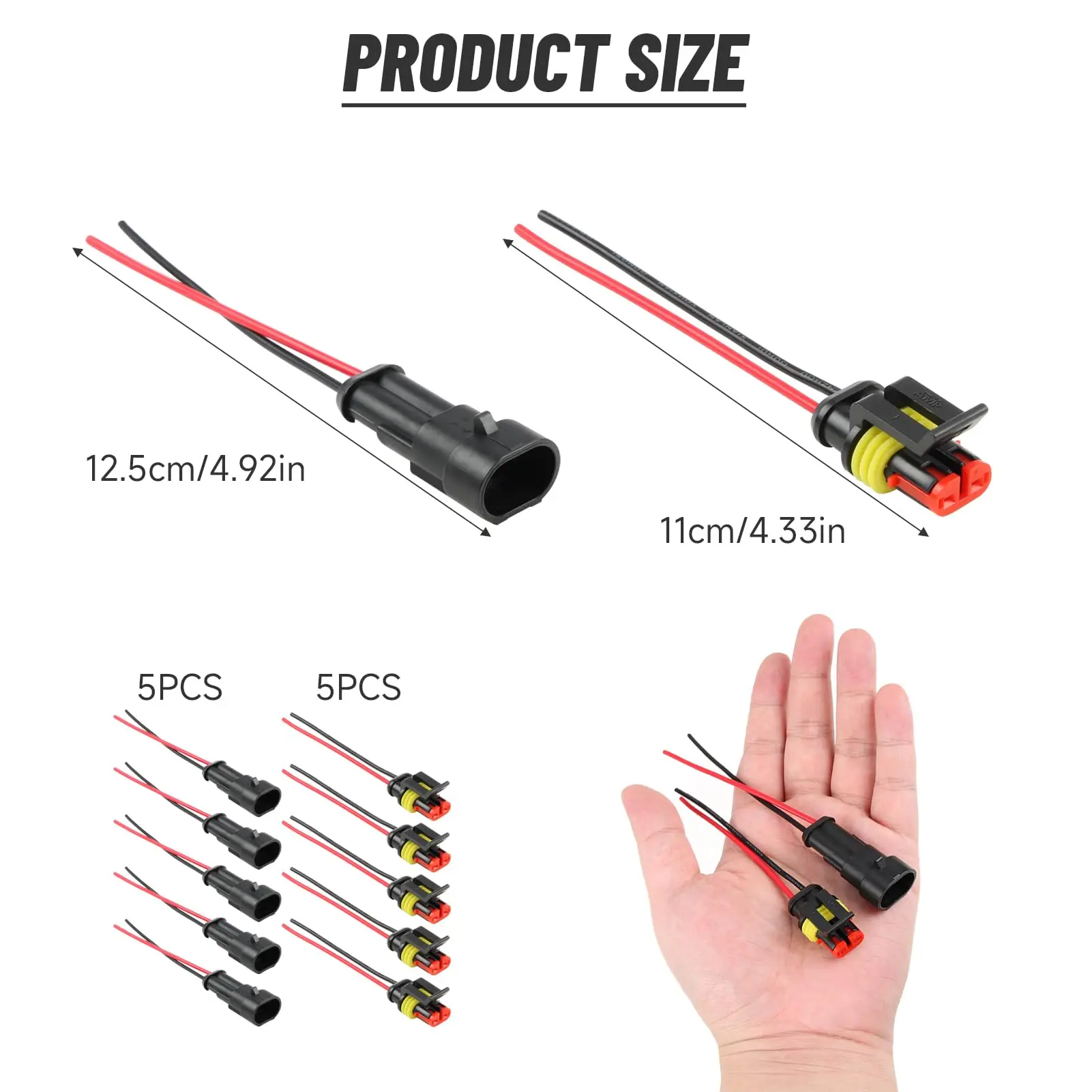 ELEABC Waterproof 2-Pin Connector Set for Vehicles