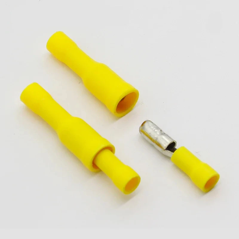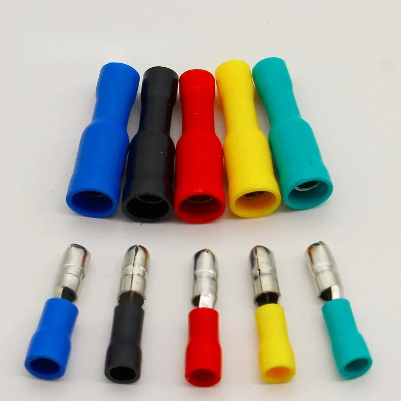Experience secure and reliable connections with this comprehensive set of insulated electrical crimp bullet terminals. Perfect for audio wiring and various electrical projects, these terminals feature vibrant color coding for easy identification. The set includes 25 male and 25 female connectors, all compatible with 22~16 AWG wire sizes, ensuring versatility and a perfect fit for your wiring needs. Crafted with durable, flexible insulation and high-quality metal crimp sections, these terminals are designed for both ease of use and longevity. Their standardized shape and ribbed features guarantee a secure crimp and steady connection. Whether you're a professional or a DIY enthusiast, these terminals enhance your wiring projects with precision and style.