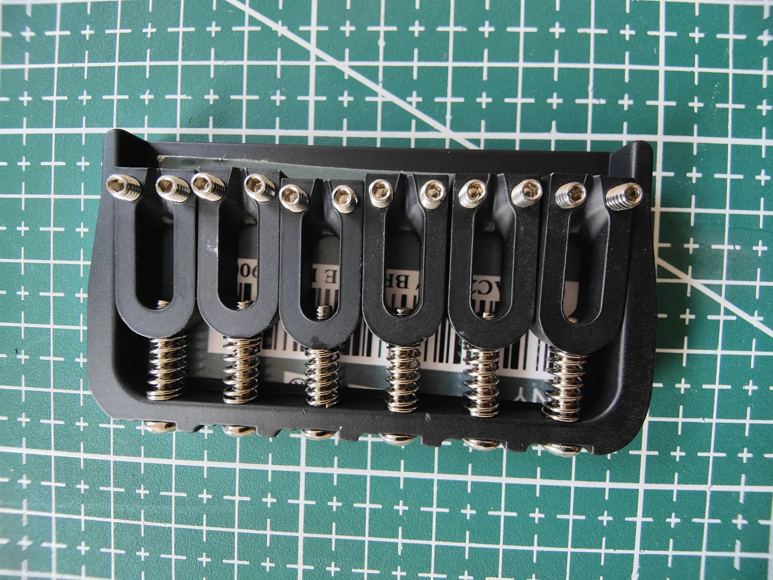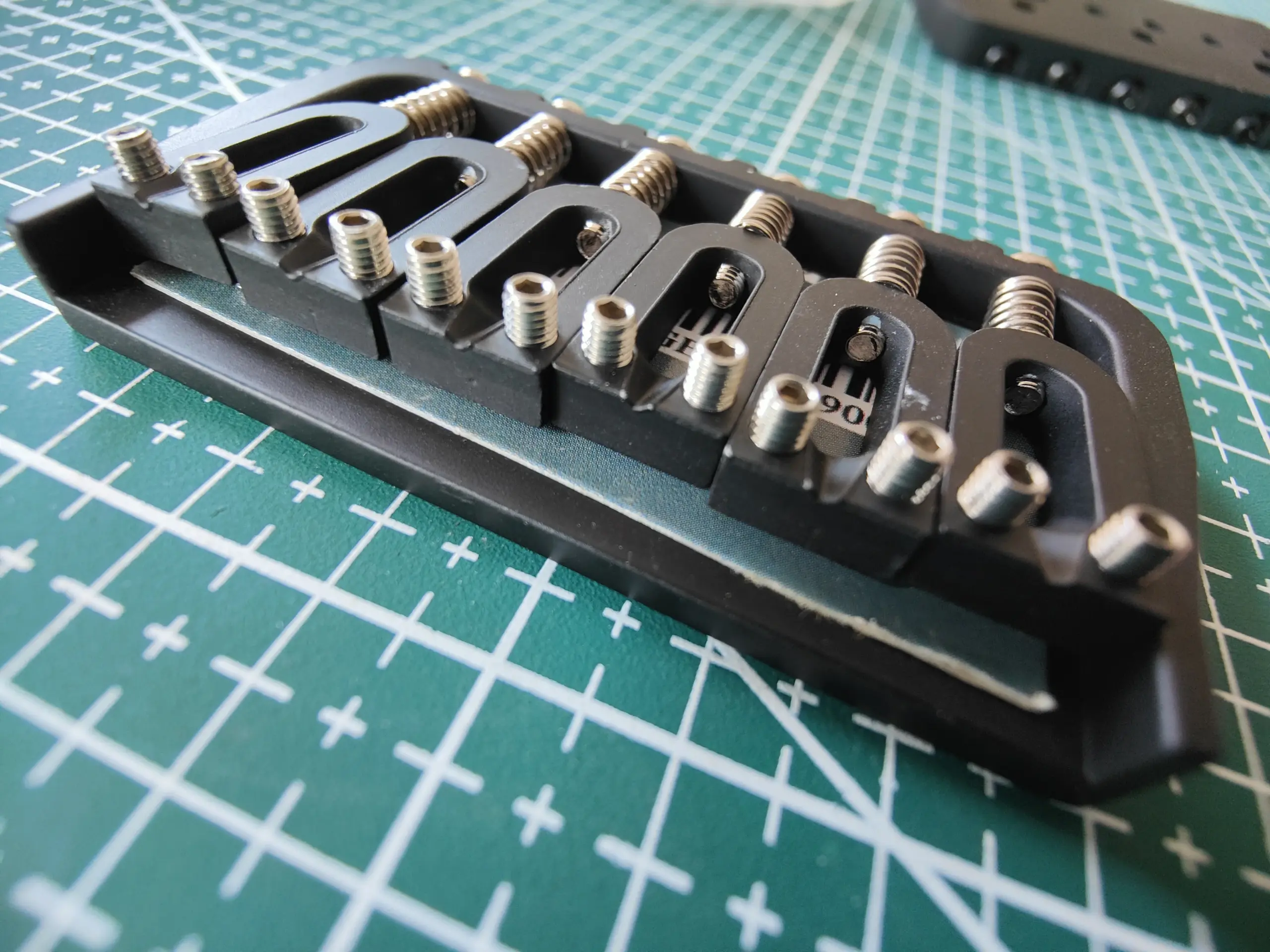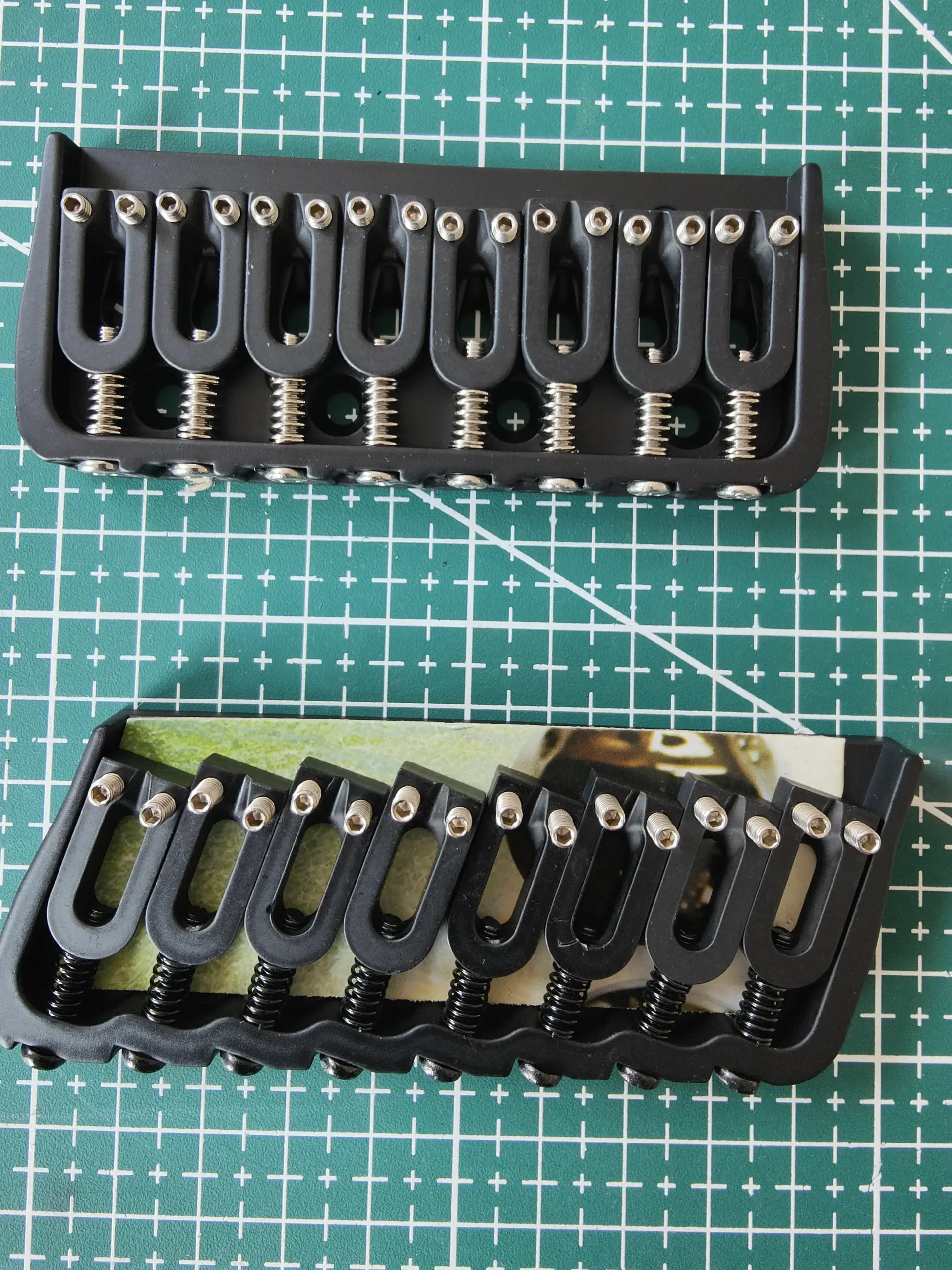 Replace your old guitar bridge with this top-quality fixed bridge designed for electric guitars. Available for 6, 7, or 8 string configurations, the sleek black finish will give your instrument a modern look. Imagine playing with enhanced tuning stability and improved string resonance, allowing you to immerse yourself in your music fully. This bridge is an essential addition to your guitar if you are looking to upgrade or repair your instrument. Feel the difference in sound quality and playability as you strum away, elevating your performance to new heights with this remarkable bridge.
