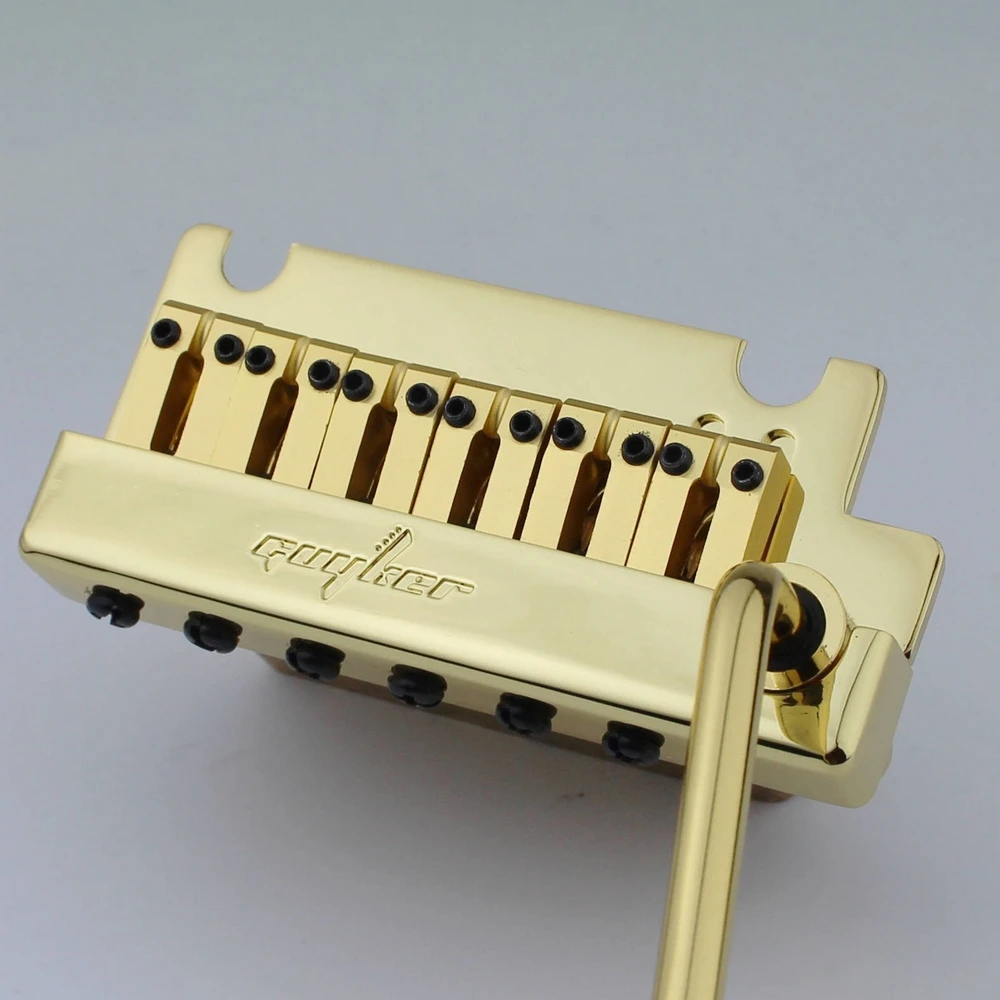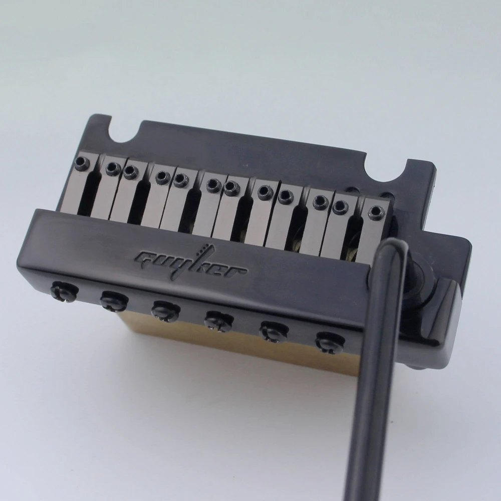 Enhance your electric guitar with this sleek 2-point tremolo bridge, featuring a non-locking design and a string spacing of 10.8mm. Crafted from durable metal, it includes high-quality brass saddles and a brass block for superior sound and longevity. Available in stylish chrome, black, and gold finishes, this modern bridge offers a smooth, polished look that complements any guitar setup. Its precisely engineered construction ensures reliable performance and easy installation, making it a perfect upgrade for guitar enthusiasts seeking improved tremolo response and stability. Elevate your playing experience with this versatile and durable guitar tremolo bridge.