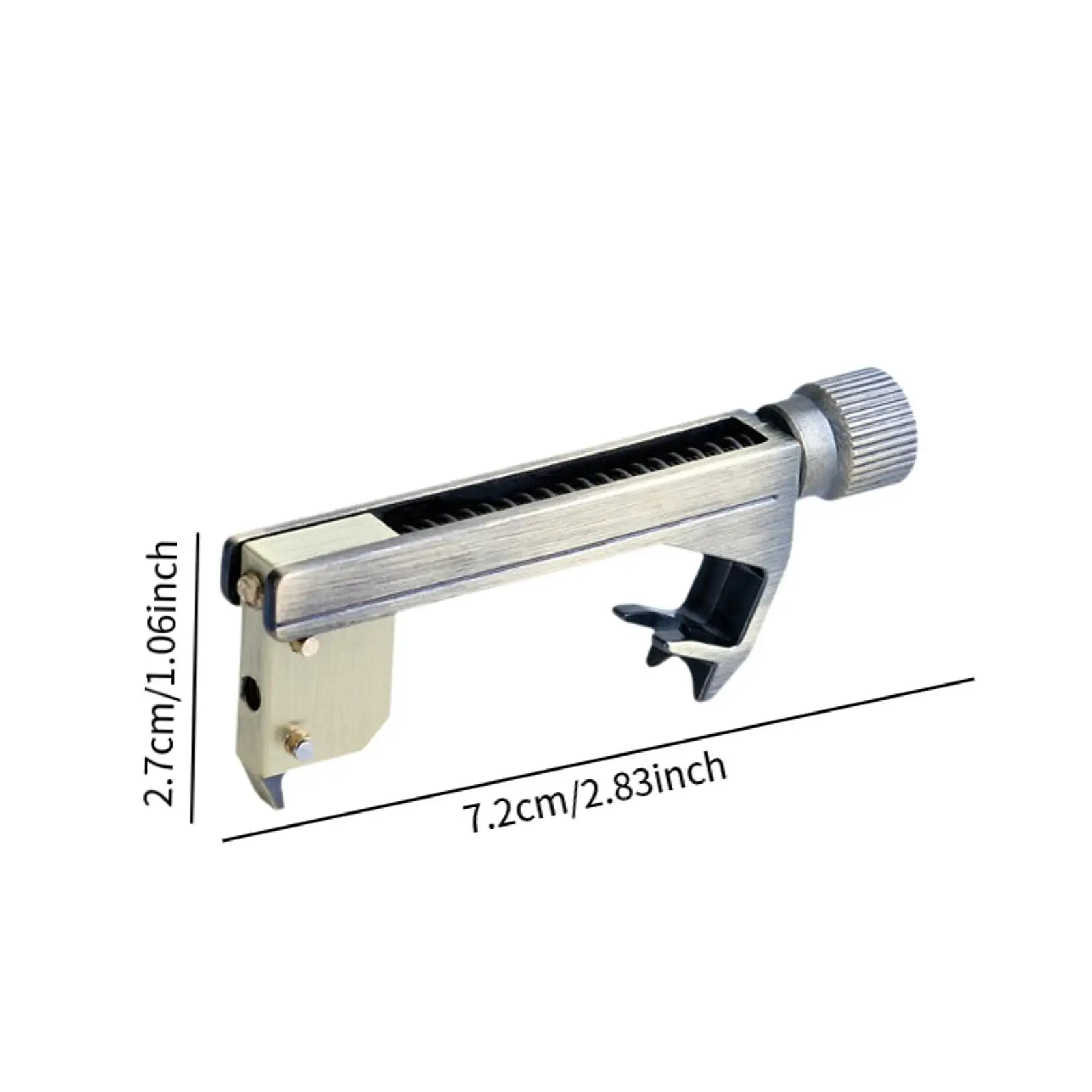 Experience the precision and durability of this sleek, professional-grade guitar tone calibrator, crafted from rugged zinc alloy with a modern, minimalist design. Measuring just 7.2 cm in length, 1 cm in width, and 2.7 cm in height, this compact device offers lightweight portability without sacrificing performance. Its brushed silver finish exudes a refined, metallic aesthetic suitable for any serious guitarist. The knurled adjustment knob provides tactile control for precise octave and pitch tuning, while the long, narrow slot on top reveals internal components that emphasize its technical accuracy. Designed to seamlessly attach to most electric guitar bridges, this calibrator ensures your instrument stays perfectly in tune, boosting your confidence during performances or recording sessions.