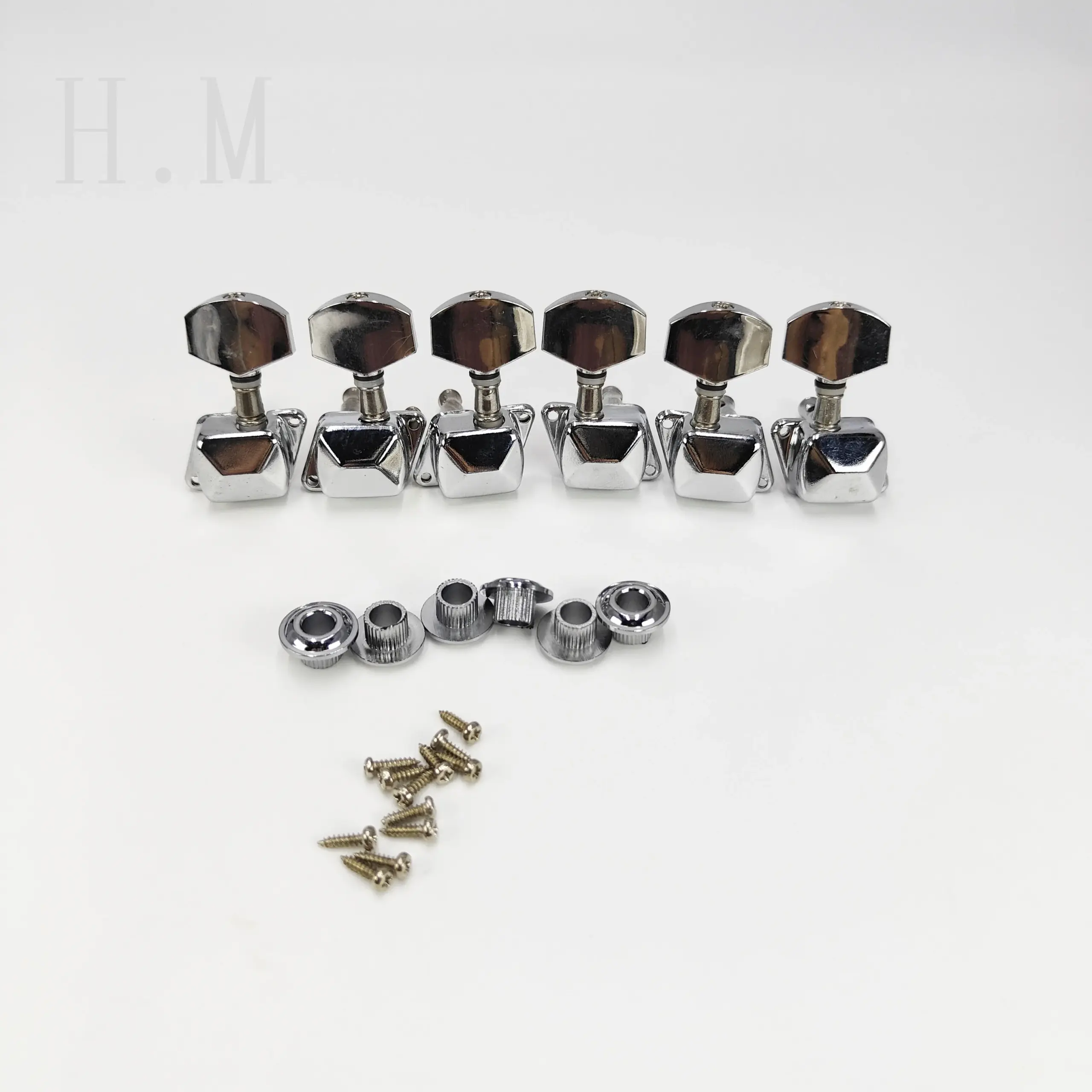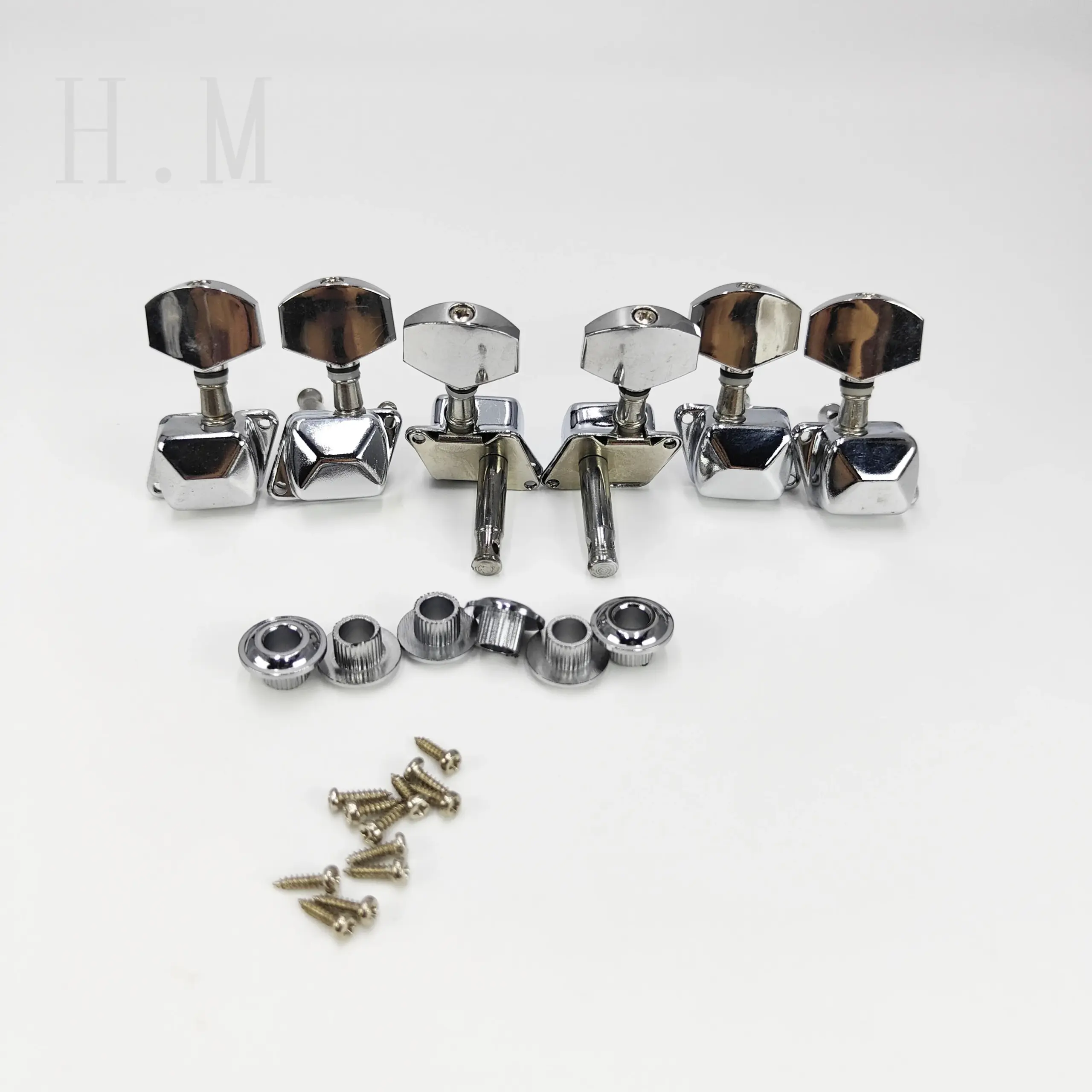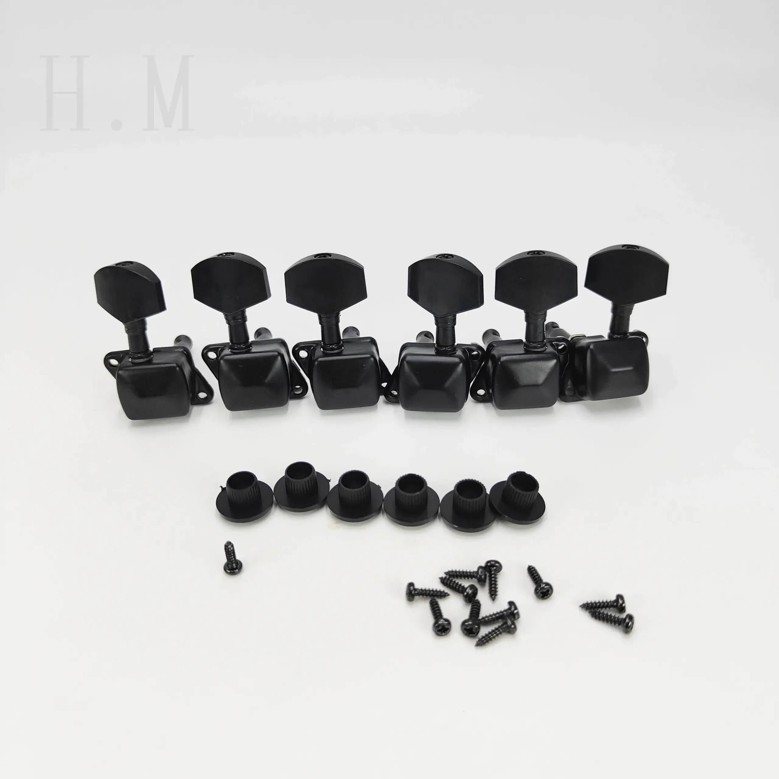 Enhance your electric guitar with this set of six durable tuning pegs featuring large square heads and semi-closed string buttons for easy grip and precise tuning. Available in sleek silver or matte black, each metal tuner offers a modern, industrial aesthetic that combines strength with style. Designed to support and support and choice features, these machine heads are compatible with various guitar models, ensuring a seamless upgrade or replacement for your instrument. Crafted for stability and durability, they are the perfect addition for guitar enthusiasts seeking reliable tuning and a polished look.