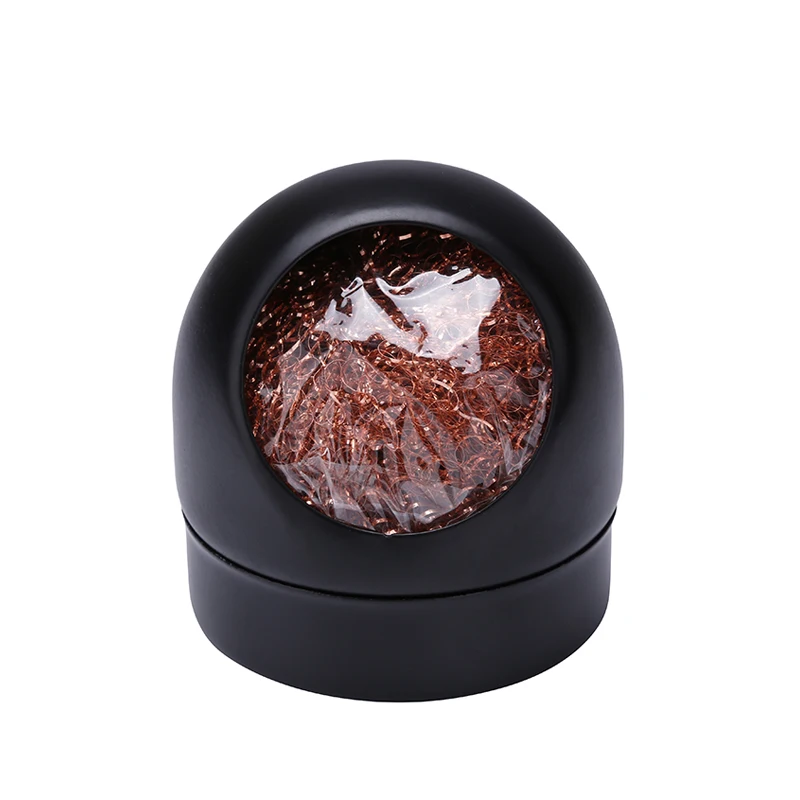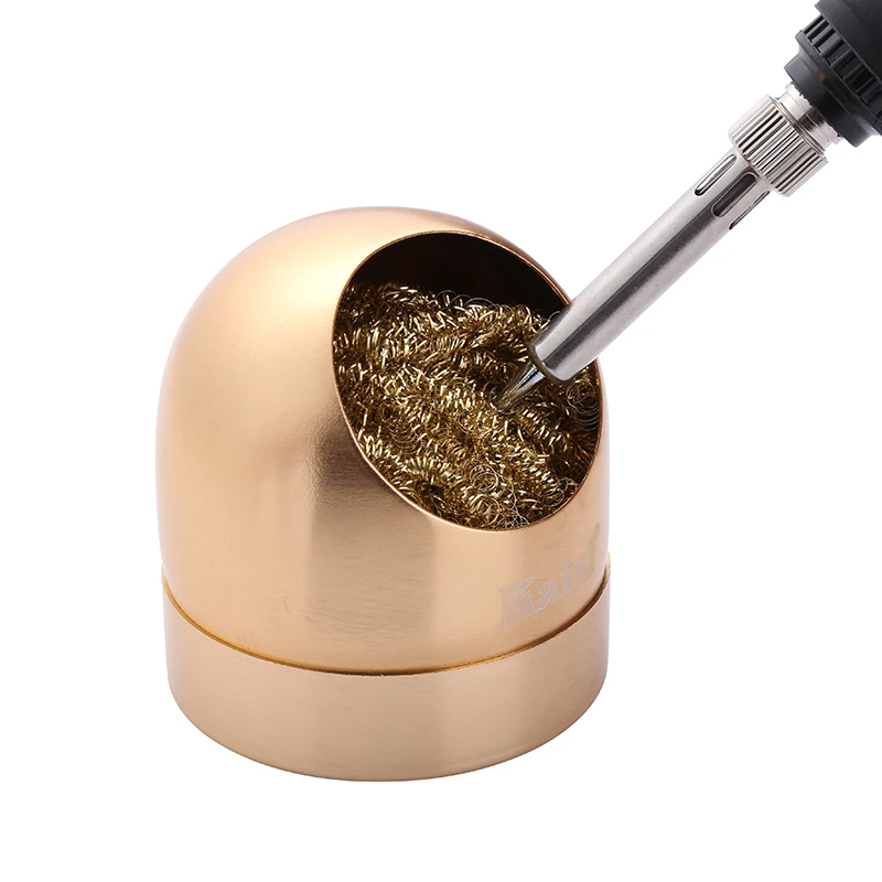 Experience the convenience of this high-quality electric soldering iron tip cleaner, designed to effortlessly maintain your soldering tools. Its sleek, dome-shaped design fits perfectly on your workbench, providing a reliable stand for cleaning tips during your projects. The black model offers a modern matte finish, while the golden version adds a touch of sophistication with its glossy surface. Both feature transparent front windows that reveal the metal shavings or wire wool inside, ensuring you can see when cleaning medium needs replenishing. Using this cleaner regularly prevents oxidation on your soldering tips, significantly extending their lifespan. Built for efficiency and ease of use, this device has quickly become an essential part of professional and hobbyist soldering stations alike.