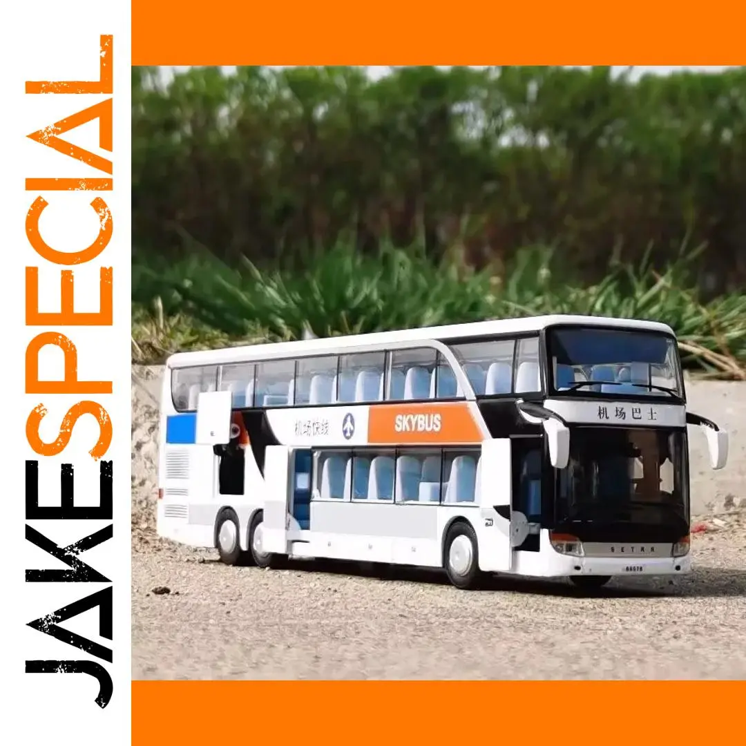 Experience the charm of modern transportation with this highly detailed diecast model of an electric tourist traffic bus. Crafted from durable alloy and plastic, this 1:32 scale replica captures the sleek, contemporary design of a real double-decker electric bus. Its clean white body is accented with bold black and vibrant orange details, creating an eye-catching look. The model features large, rectangular transparent windows, a curved roof, and realistic front-facing lights and grille. With functional sound and lighting features, this collectible brings an added layer of authenticity and fun. Perfect for enthusiasts or as an eye-catching display piece, it makes a charming addition to any collection. Elevate your space with this stylish, detailed model that breathes life into the world of modern urban transit.