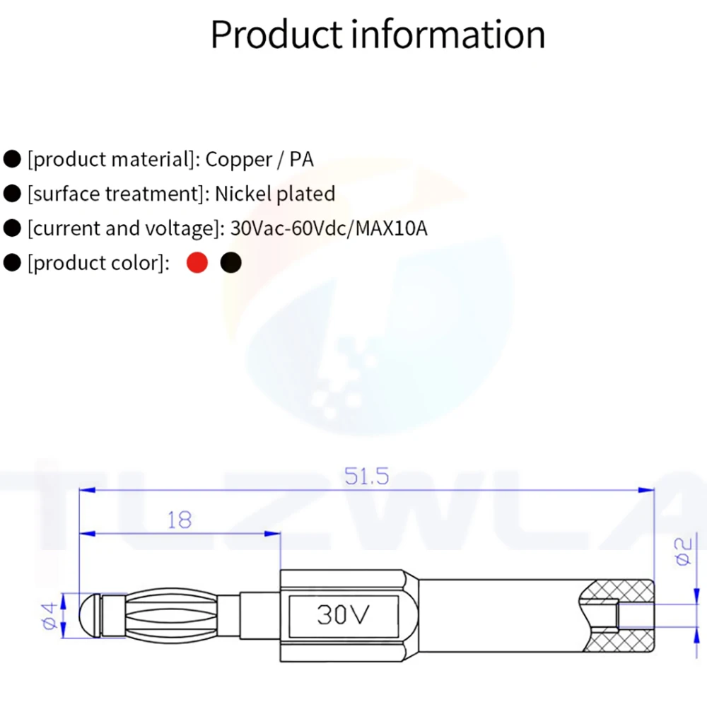 - Features a 4mm banana plug to 2mm female socket, and a 4mm female hole to 4mm male head connector for versatile connections.